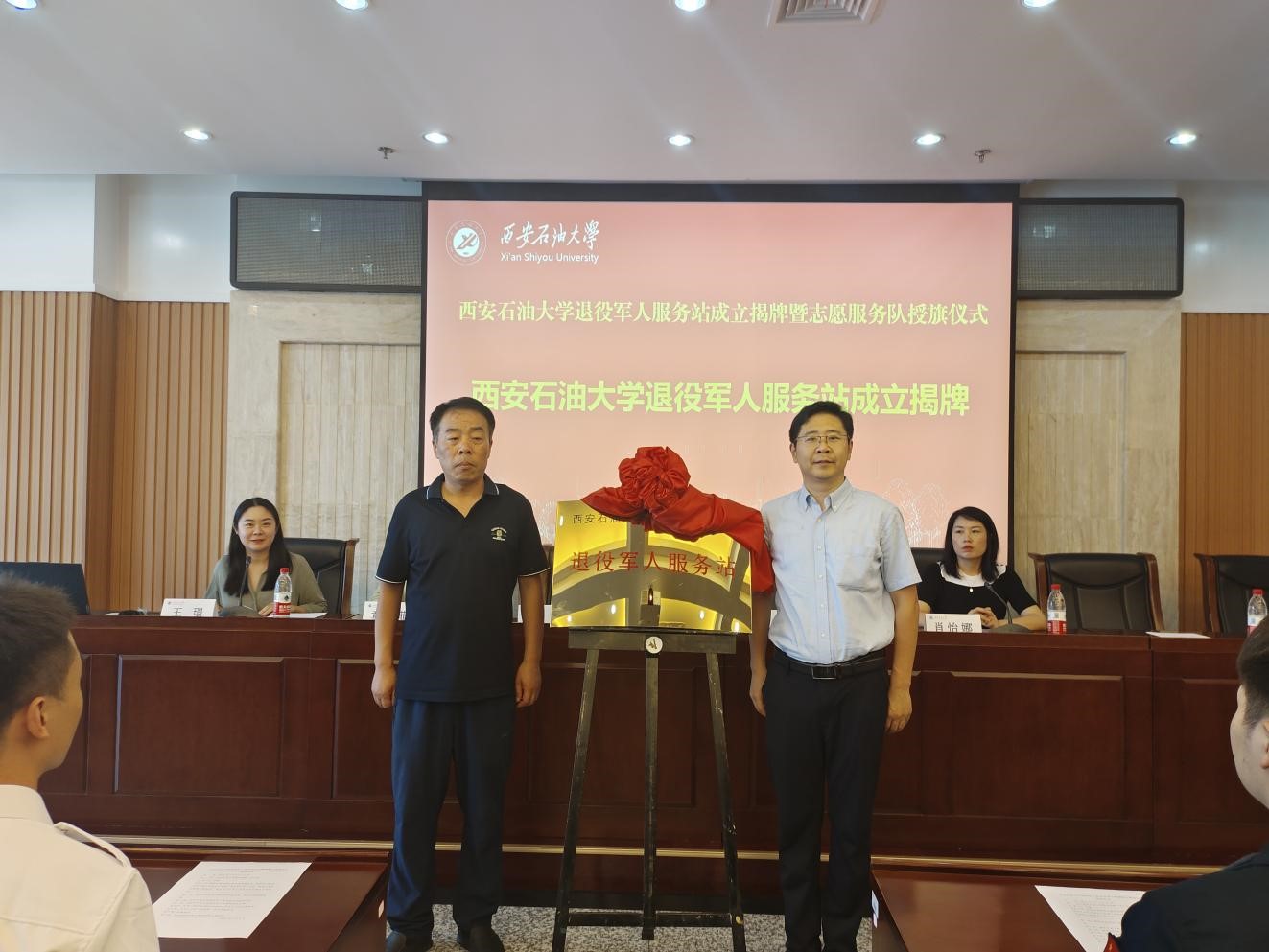 儀式上,吳敬旭、王亮為我校退役軍人服務站共同揭牌。