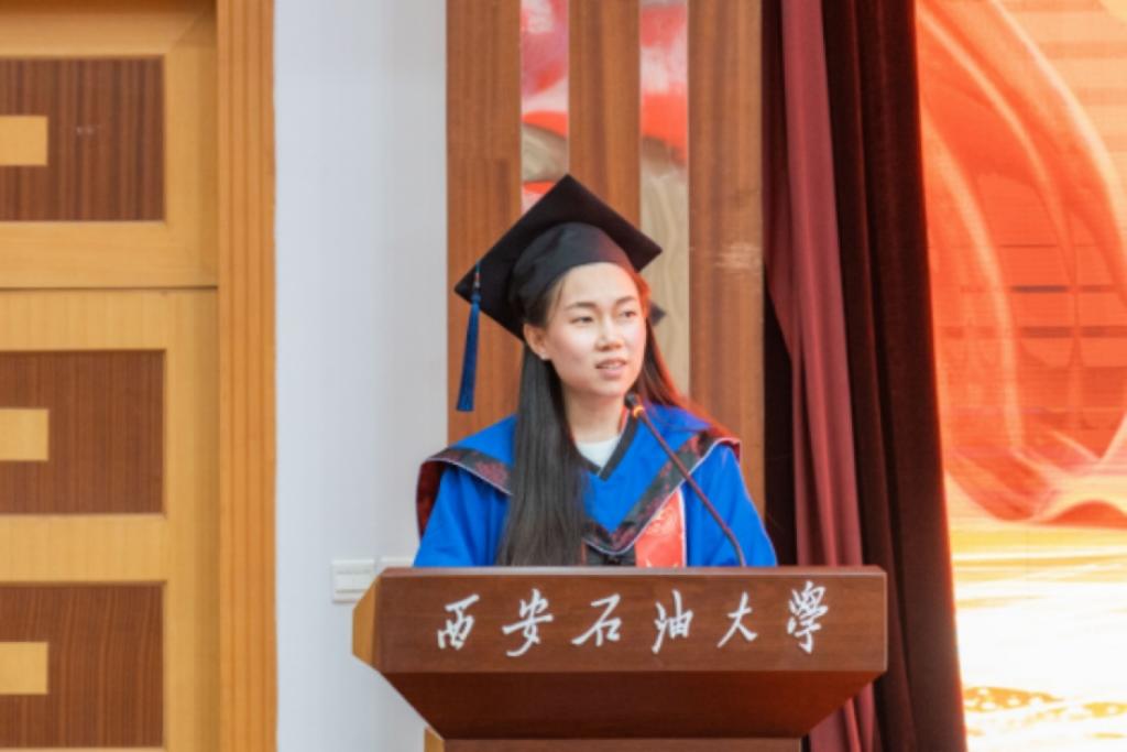 MBA導師裴旭東教授深情地回顧了與2024屆MBA相處的美好時光,并向在場同學們分享了自己的感悟和期許。遠在瑞典訪學的楊睿娟教授精心錄制了視頻,與同學們一起歡度畢業的美好時刻,向同學們送上殷切的祝福。2021級MBA班班長李晨曦代表2024屆MBA畢業生致辭。