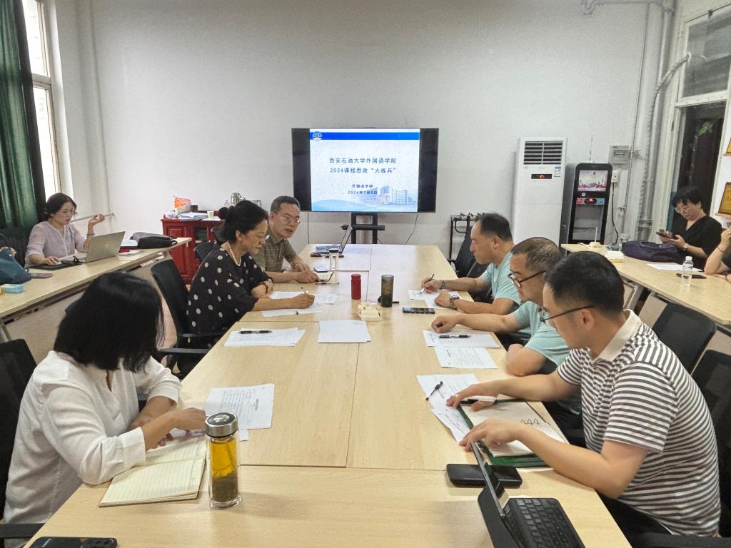 為認真貫徹落實習近平總書記關于學校思想政治理論課的重要論述,加強高素質、創新型教師隊伍建設,深化課程育人質量改革,結合《中共陜西省委辦公廳關于印發〈全國“大思政課”綜合改革試驗區陜西省實施方案〉的通知》(陜辦字〔2023〕54號)精神,按照西安石油大學關于開展2024年思政課程課程思政教師 “大練兵”主題活動的通知要求,外國語學院于7月8日下午在華油能源樓727舉辦了課程思政“大練兵”講課比賽,學院黨委書記張建高、副院長陳武、大學外語第一教學部黨支部書記付俊芳、大學外語第二教學部主任彭健、英語系主任鐘澤波、翻譯系主任秦艷霞、俄語系黨支部書記李娜、多語種教學部主任陳旭參加了本次比賽。