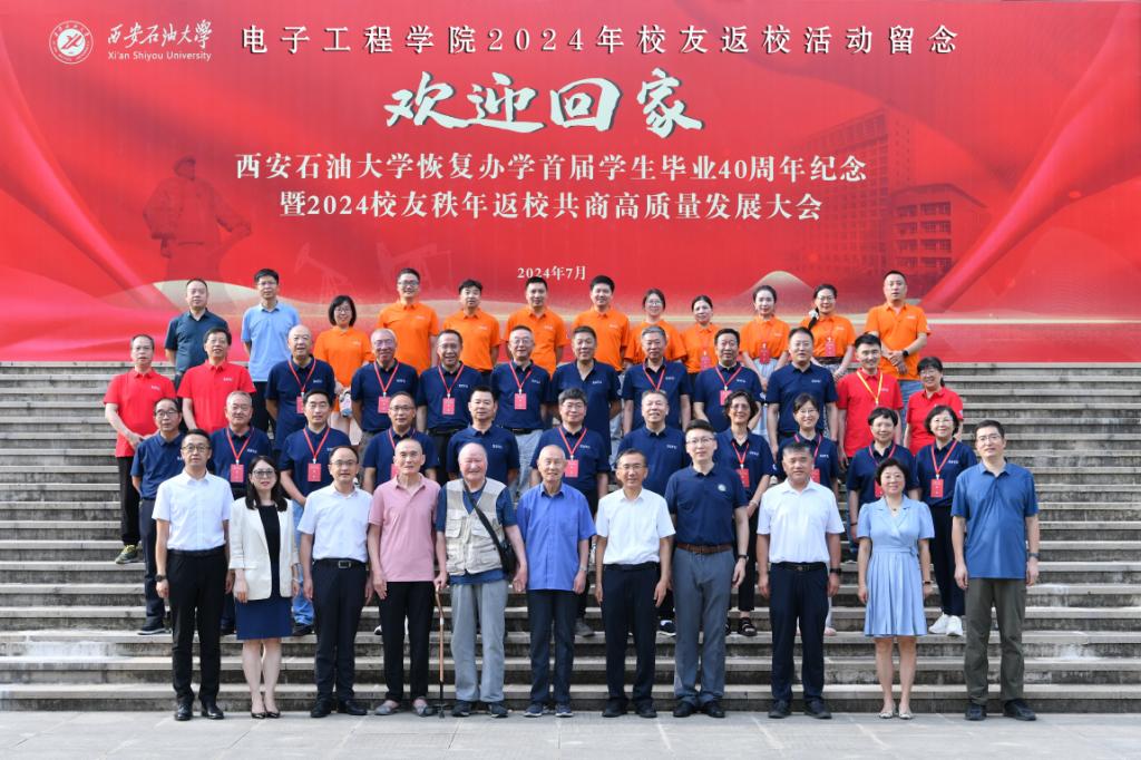 學院領導班子、教師代表及秩年返校校友在雁塔校區忠實廣場合影留念。