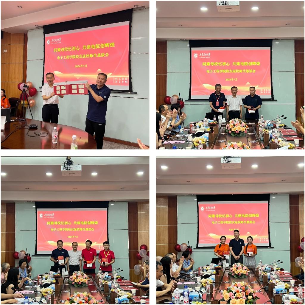 校院兩級領導為校友贈送了學院精心制作的紀念禮物,儀80校友青春紀念冊、學生登記表紀念相框、電子工程學院院史、院徽,這些禮物承載著學院與校友間的深情厚誼。