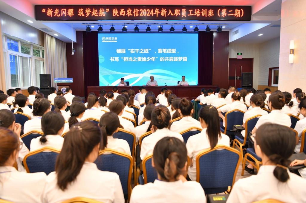 2024年7月29日,“新光閃耀 筑夢起航”陜西農信2024年新入職員工培訓班(第二期)在我校明德校區正式開班。來自全省農合機構的363名新員工參加開班儀式。省聯社黨委副書記魯怡然出席儀式并講話,儀式由省聯社培訓工作負責人高雄偉主持。