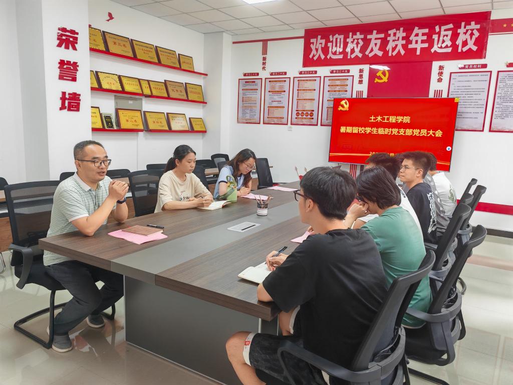 為進一步加強暑期留校學生黨員教育和管理,更好服務留校復習考研學生,按照學院黨委安排,8月4日上午,土木工程學院在鄠邑校區開物樓135會議室召開暑期留校學生臨時黨支部全體黨員大會。全體留校學生黨員參加會議,學院黨委委員、學工辦主任李化杰主持會議。