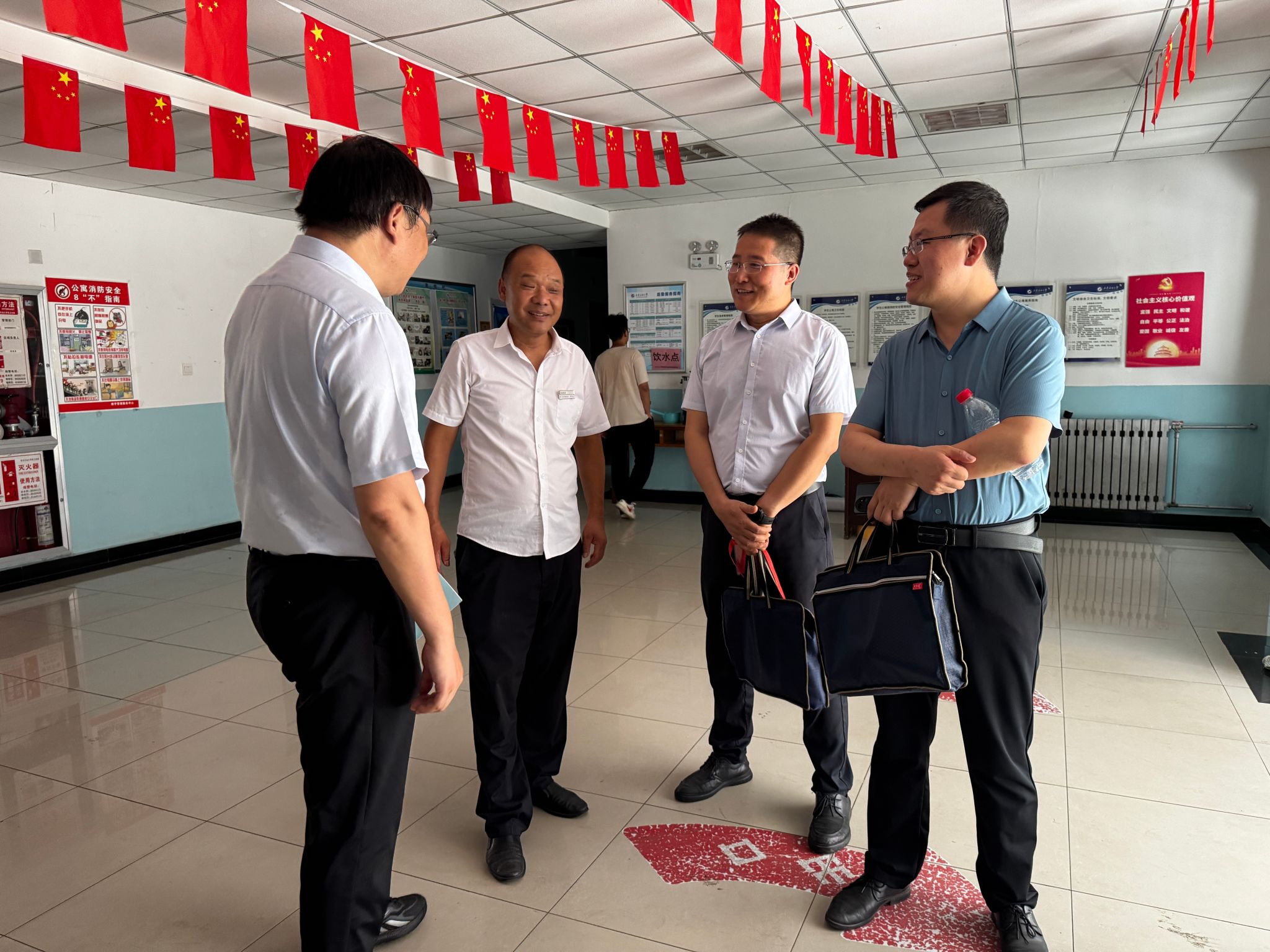 走訪過程中,席利哲一行對新同學的到來表示熱烈歡迎,針對迎新工作、宿舍環境、生活習慣、服務保障、未來學習和規劃等與學生展開了深入交流,并對學生提出的困惑和問題給予了關心和解答,鼓勵新同學要樹立遠大理想,珍惜大學時光,勤奮學習,勇于探索未知領域,全面提升自己的綜合素質和能力水平。各位老師還提醒新生要注意用電安全、防火防盜等事項,并鼓勵大家相互尊重、相互關心、相互包容、相互幫助,共同營造一個和諧、溫暖、安全、舒適的宿舍環境。最后,還與宿管工作人員就加強管理、優化服務、積極回應學生的關切和訴求等方面進行了深入的溝通交流。