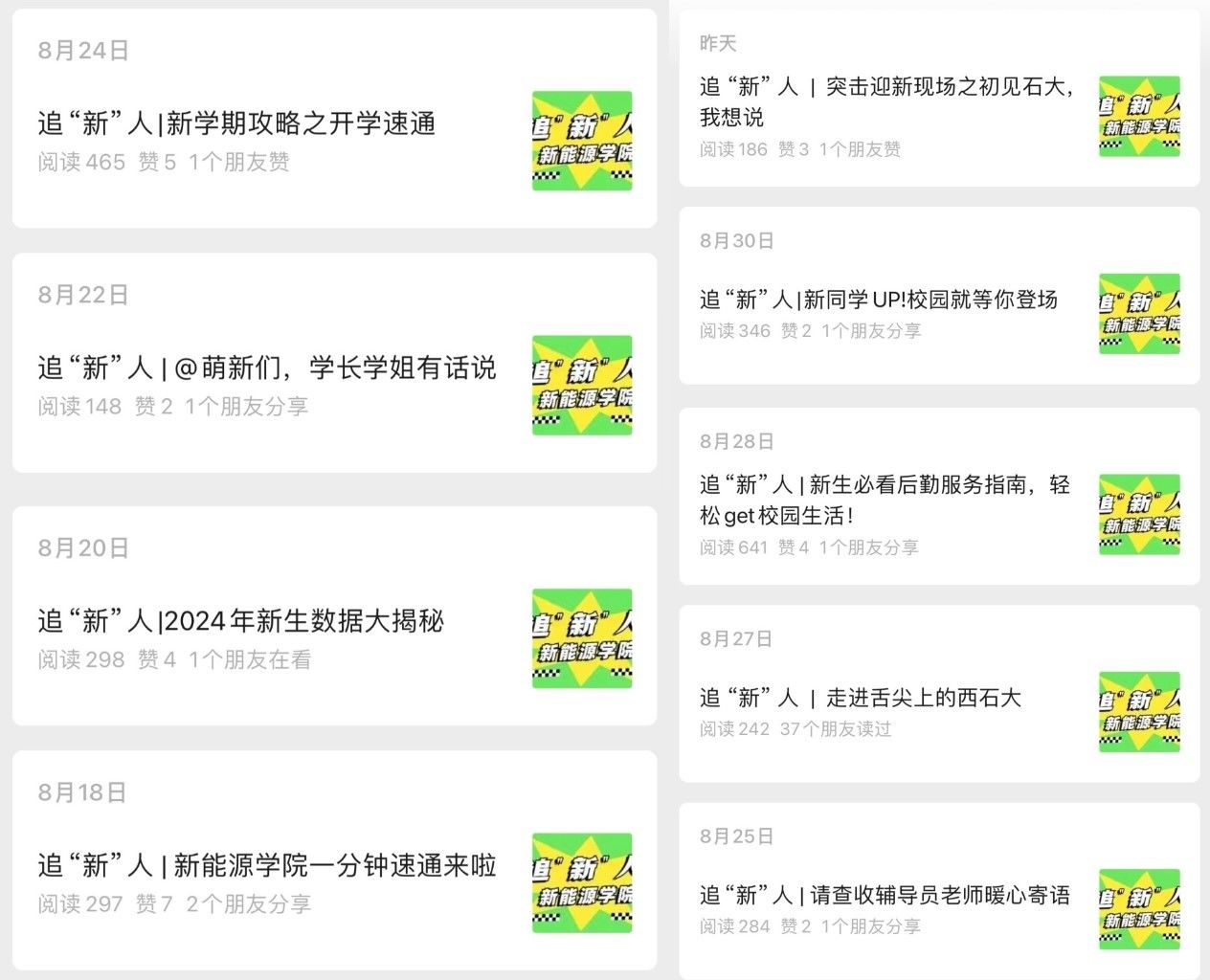 據了解,8月18日—9月1日學院團委宣傳部精心組織開展追“新”人迎新系列活動,通過校園文化、后勤服務、輔導員寄語、學長學姐說等多方面內容,讓新生更快的了解學校建設和大學生活,為幫助新生順利報到,盡快融入大學生活。