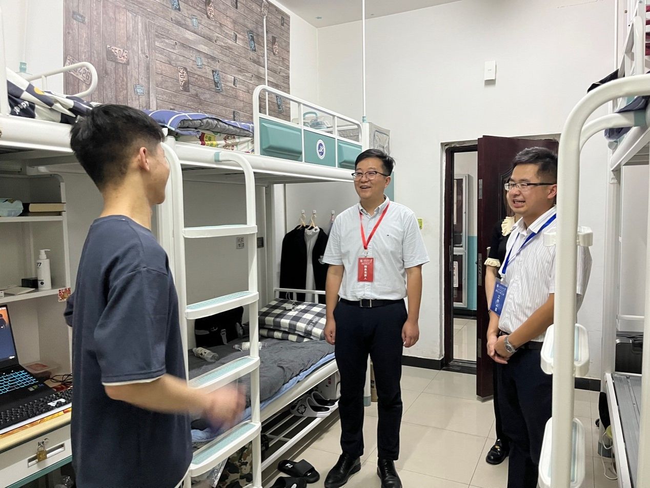 8月31日晚,學院黨委副書記劉煒航、學生工作辦公室主任馬武軍和2024級輔導員靳晨璐深入新生宿舍走訪慰問。走訪過程中,學院老師對同學們能夠加入新能源學院大家庭表示誠摯的歡迎,叮囑同學們注意宿舍防火、防騙和用電安全,希望同學們能夠盡快相互熟悉,建立良好的同學關系,盡快適應大學新生活,開啟新征程。