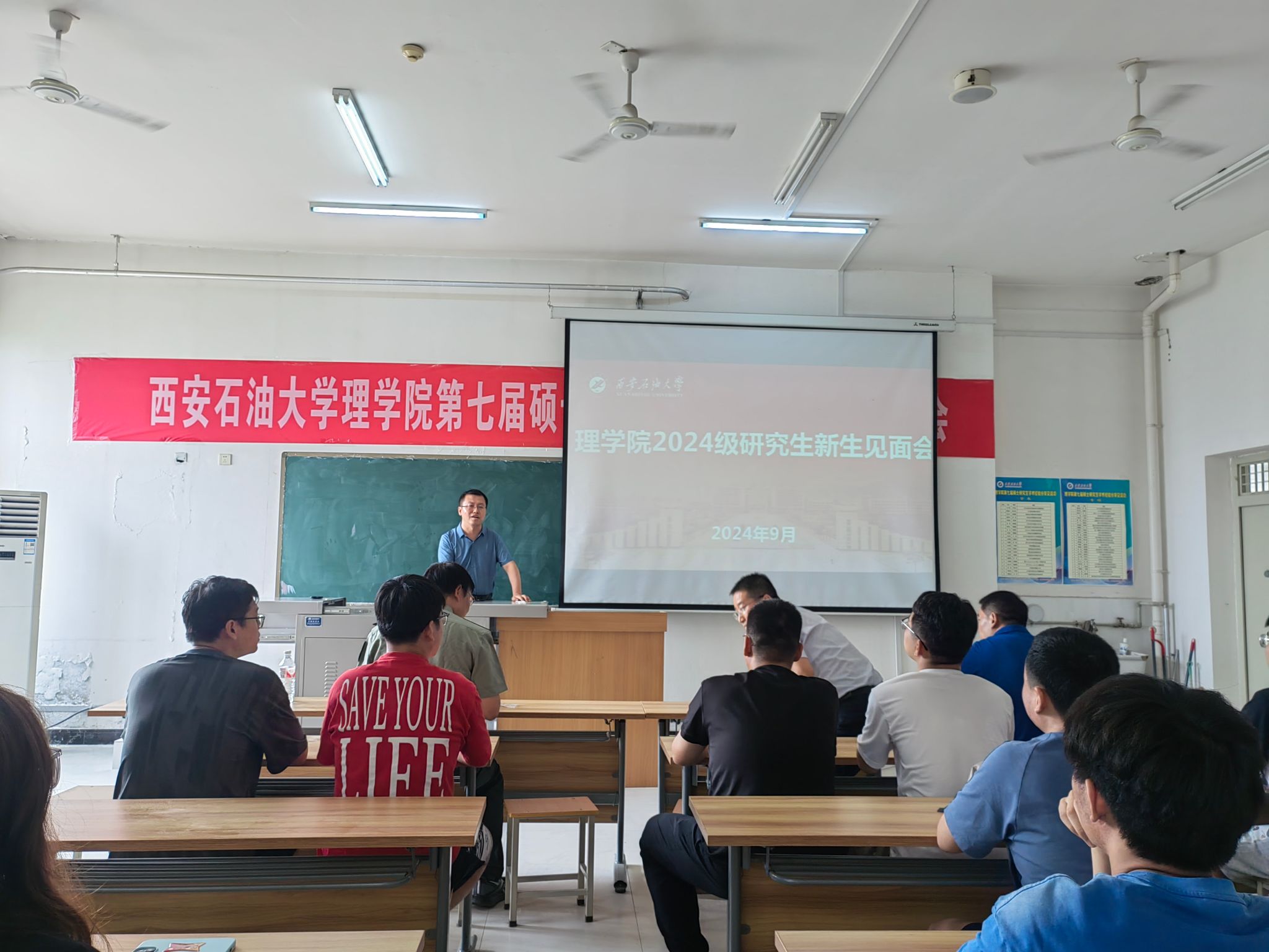 9月2日下午,理學院在鄠邑校區志遠樓502室召開了2024級碩士研究生見面會。學院黨委書記席利哲、黨委副書記楊富民、副院長折延宏、應用物理系主任丁繼軍、研究生輔導員馬小梅及全體2024級碩士研究生參加了本次大會。會議由副院長折延宏主持。