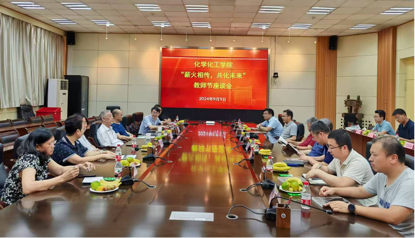 在第40個教師節來臨前夕, 9月9日下午化學化工學院在雁塔校區會議中心第二會議室舉辦“薪火相傳 共化未來”教師節座談會。學院近年來退休的老教師代表、學院領導班子成員、教工黨支部書記、各系主任和青年教師代表參加會議,座談會由學院黨委書記高小明主持。
