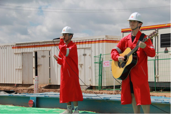 前期準備中,何云老師利用假期時間,悉心指導參演學生準備與排練,將鐵人精神與實踐教學相結合,精心準備了一系列經典曲目。8月26日于50072鉆井隊,常超凡演唱的《石油人的歌》中拉開演出序幕,迅速調動起了石油工人們的熱情,贏得陣陣掌聲;由彭月懷演唱的民謠《春風十里》讓一線石油工人疲憊的身體在這宜人溫馨的歌聲中能得到一絲放松;民歌《小白楊》唱出了一線石油工人的情懷;吉他彈唱《無名的人》則是對這些默默無聞、堅守崗位的石油人鮮明的表達。