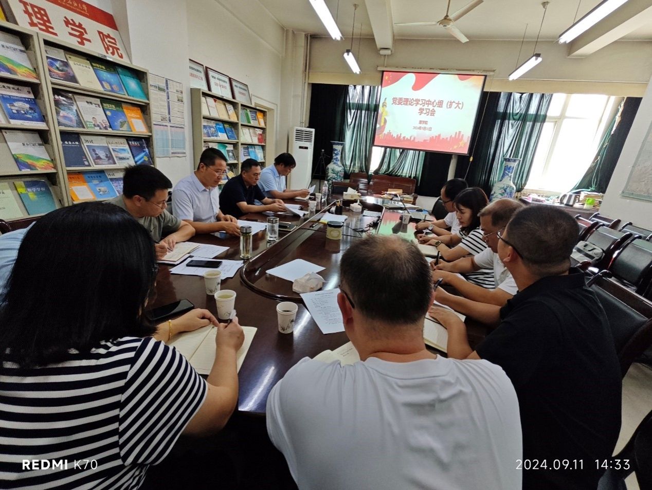 9月11日下午,理學院黨委在雁塔校區東方石油樓501室召開理論學習中心組(擴大)學習會,學院黨委理論學習中心組成員、教工黨支部書記參加會議。學院黨委書記席利哲主持學習會。