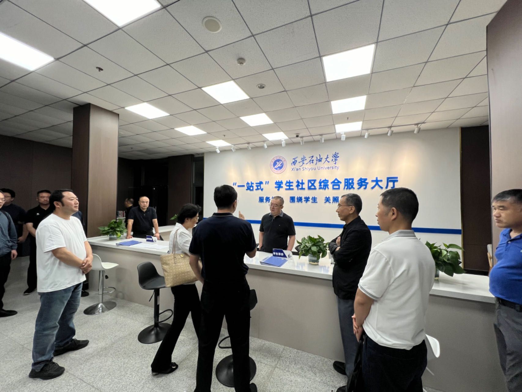 校黨委書記常江、校黨委副書記張木走訪了“一站式”學生服務大廳,詳細了解服務大廳規劃布局和管理模式等學生社區各項建設情況。
