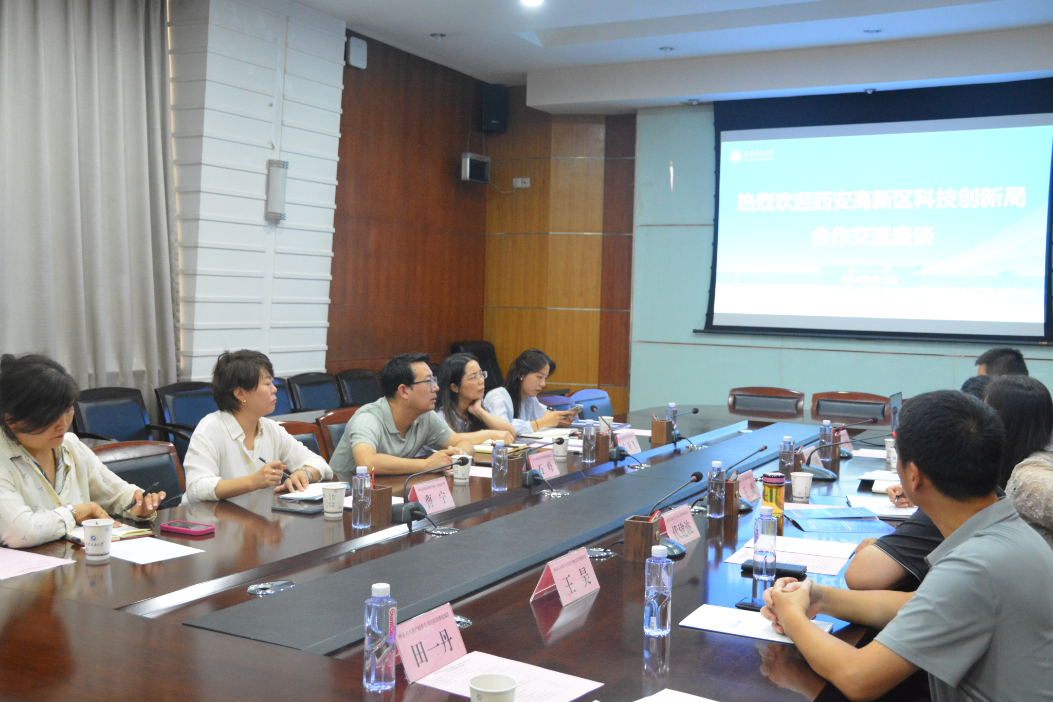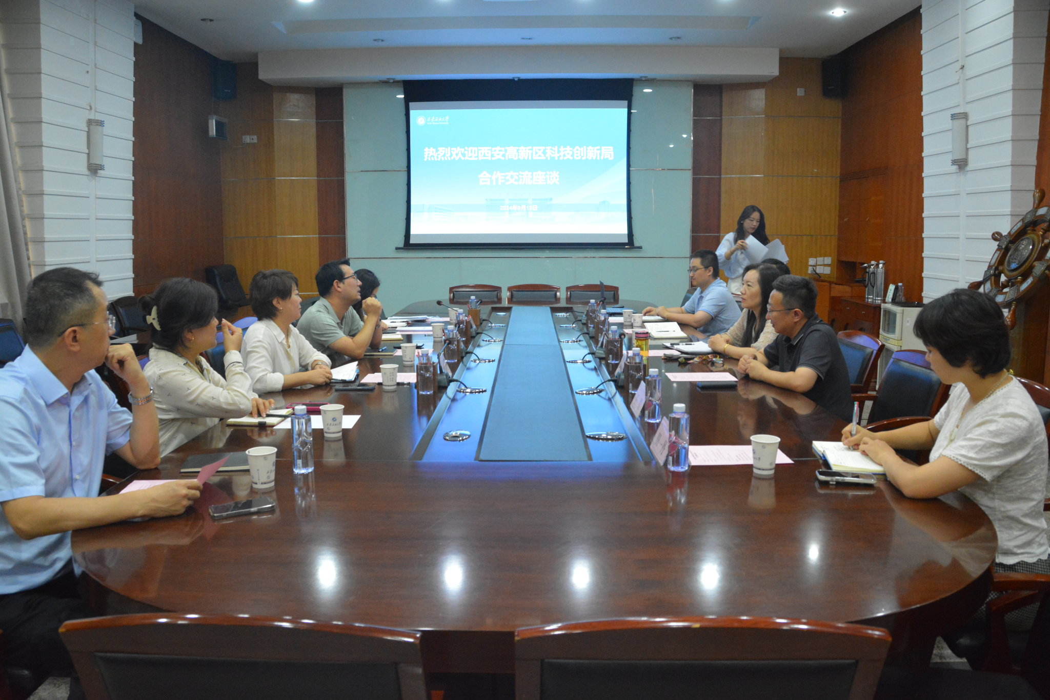 9月13日下午,西安高新區科技創新局副局長石峰一行應邀來我校走訪交流,座談會在雁塔校區西階會議中心第四會議室舉行。會議由資產經營公司總經理王曉主持,科研處負責同志和教師代表參加會議。