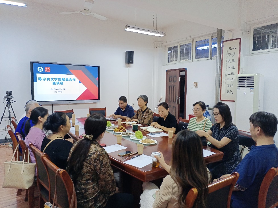 自我校面向全社會征集陳忠實文學館展品公告發布以來,受到了社會各界的關注。經過前期的溝通走訪,9月18日下午,人文學院在雁塔校區華油能源樓813會議室組織召開了陳忠實文學館展品合作座談會。此次座談會邀請了陜西文學收藏界的藏友王扣勞、王貴強,剪紙藝術家王海英、王強,畫家賀正法等人。人文學院黨委書記余小勇、院長方亭、教授王新建、教授柯卓英及陳忠實文學館籌備組的部分老師參加了座談,宣傳部副部長高黎也應邀出席。