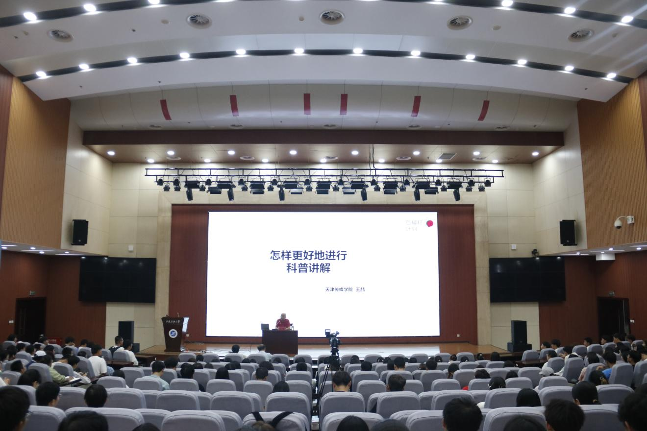 王喆結合多年來豐富的一線工作經驗,從科普講解概念、科普講解的目的、科普講解的總體要求、科普講解構成要素、科普講解的有聲語言表達等方面對如何更好地進行科普講解進行了詳細的闡釋。他指出,科普講解的全稱是“科學普及講解”,又稱“大眾科學講解”或者“普及科學講解”,特別以全國科普講解大賽為范例,著重強調做好科普講解一定要注意文本寫作的嚴謹性、趣味性,語言表達的豐富性、多樣性,PPT創作的多彩性、清新性,音樂配合的烘托性、準確性。同時希望同學們能夠以《中國公民科學素質基礎》為標準,不斷了解和領悟中華優秀文化,增強綜合素養。最后,他與現場同學們進行了深入的互動交流,對大家的提問逐一進行了解答。