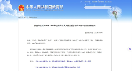 據悉,教育部人文社會科學研究項目由教育部面向全國普通高等學校設立,是目前我國人文社科研究領域層次高、權威性強、影響大的科研項目,也是衡量高校人文社科科研實力和水平的重要指標之一,具有重要的示范和引導作用。此類研究項目旨在適應我國經濟建設、社會發展和高等教育事業發展需要,進一步推進高等學校人文社會科學的繁榮,推動人文社科領域的研究和發展,推出有分量、有深度、有價值的研究成果并促進人文社科知識的傳播和應用。