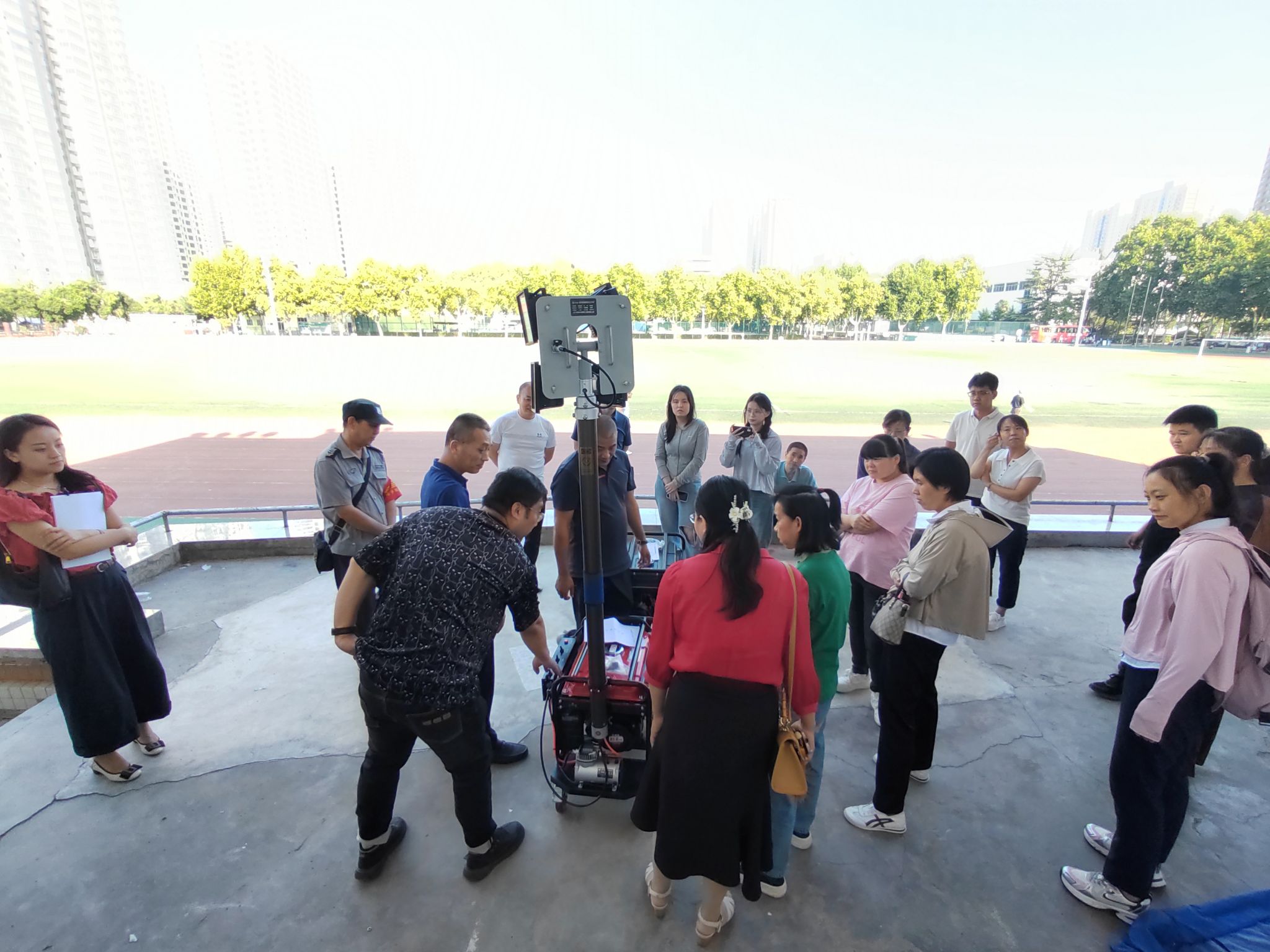 為進一步發揮應急避難場所的社會減災效益,增強學校抵御和應對突發災害公共事件的綜合防災減災能力,經前期選址建設,西安石油大學雁塔校區應急避難場所現已在我校建成,是室內室外兼具型,綜合性長期避難場所,適應于地震、地質、火災、洪澇等多災種應急避難。為了確保在應急場景下的物資設備使用和運轉正常,提升避險救災服務能力,后勤處聯合雁塔區應急局、長延堡街道辦事處、石油大學社區等單位,于9月23日下午在雁塔校區體育場開展應急避難場所應急物資設備操作使用培訓和現場演練。