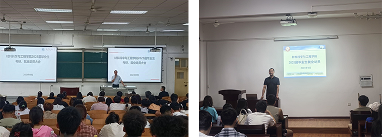 為引導2025屆畢業生切實了解當前考研就業形勢,進一步強化畢業生職業生涯規劃能力,引導學生樹立正確的成才觀、職業觀、就業觀,推動畢業生就業升學工作。材料科學與工程學院分別于9月24日在雁塔校區第四實驗樓302和9月26日在鄠邑校區博覽樓239教室召開2025屆畢業生升學、就業再動員大會。學院黨委副書記張云姿作動員講話,100余名碩士研究生和260余名本科畢業生參加,會議由輔導員宋二鵬和周鑫主持。