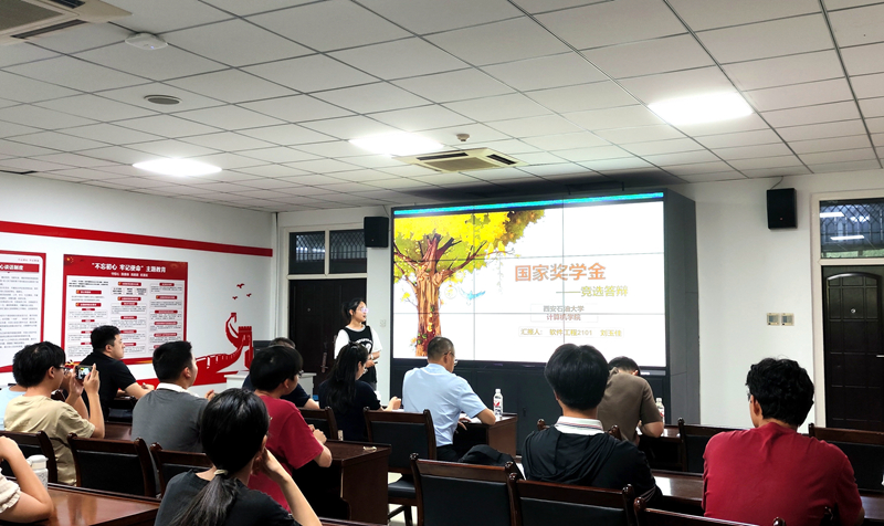 2024年9月25日下午,計算機學院在鄠邑校區博知樓112會議室召開2023-2024學年國家獎學金評審答辯會。地球科學與工程學院黨委副書記王瑩、電子工程學院黨委副書記芮執根、計算機學院黨委副書記龐遠和學工辦非學生參評年級的輔導員老師擔任評委。