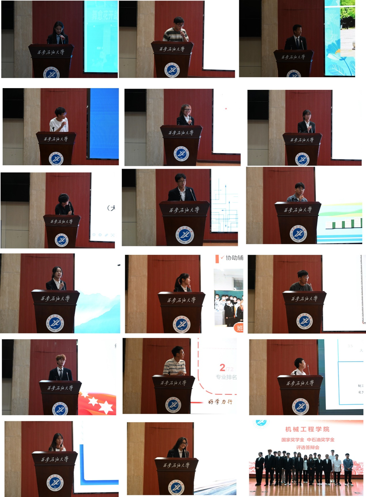 答辯結束后,答辯學生與評委老師合影留念,評議小組嚴格按照評議規則、答辯成績、支撐材料等進行綜合評審和排序,確定2024年度本科生國家獎學金、中石油獎學金等項目的推薦及參評人選。
