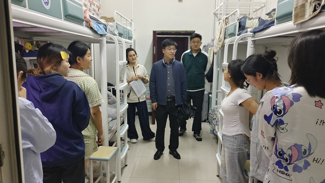 一次查訪,深化安全穩定成果。9月29日晚,黨委副書記張浩然帶領各年級輔導員深入學生宿舍,特別是重點關注學生宿舍,詳細詢問了學生們近期的思想動態,關心大家的學業、生活情況,還特別關注了學生的假期去向,鼓勵大家合理規劃假期生活,確保安全出行。通過面對面的交流,不僅拉近了師生間的距離,更讓學生感受到了來自學校的溫暖與關懷,進一步增強了學生遵守安全規定的自覺性。