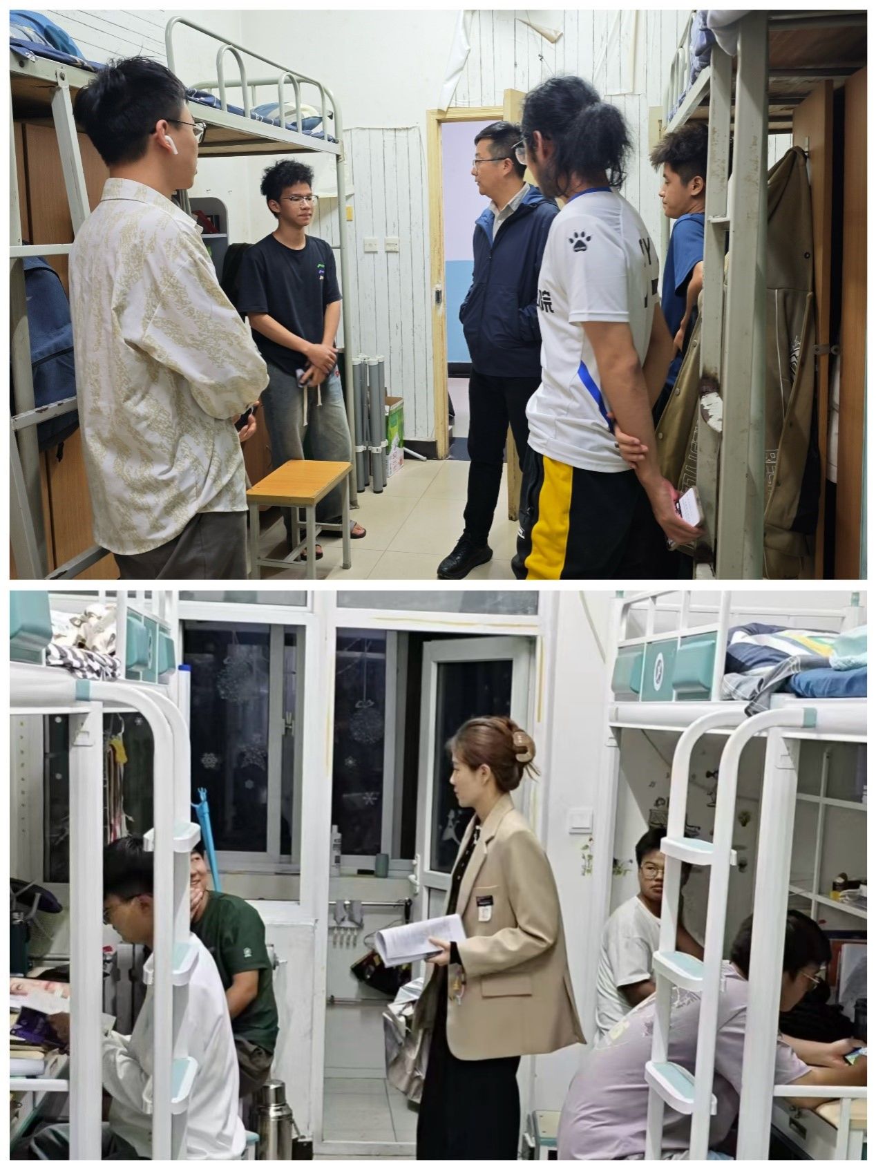 ——深入宿舍走訪。29日晚,學院黨委副書記劉煒航和各年級輔導員深入學生宿舍,與學生進行親切交談,詳細了解學生假期去向以及日常學習生活的實際困難,并就假期宿舍安全、人身安全、財產安全、交通安全、網絡安全等方面提出了具體要求,叮囑同學們嚴格遵守學校公寓管理相關規定,提高安全防范意識,樹立良好的生活習慣,共同營造安全、舒適和諧的住宿環境。