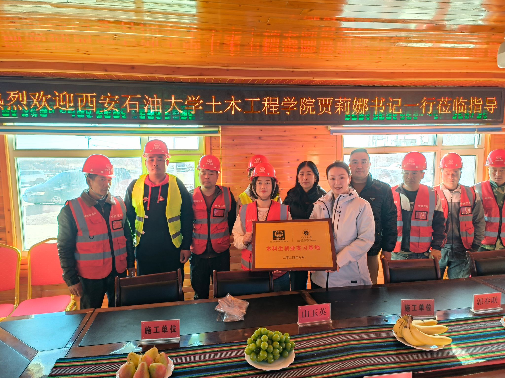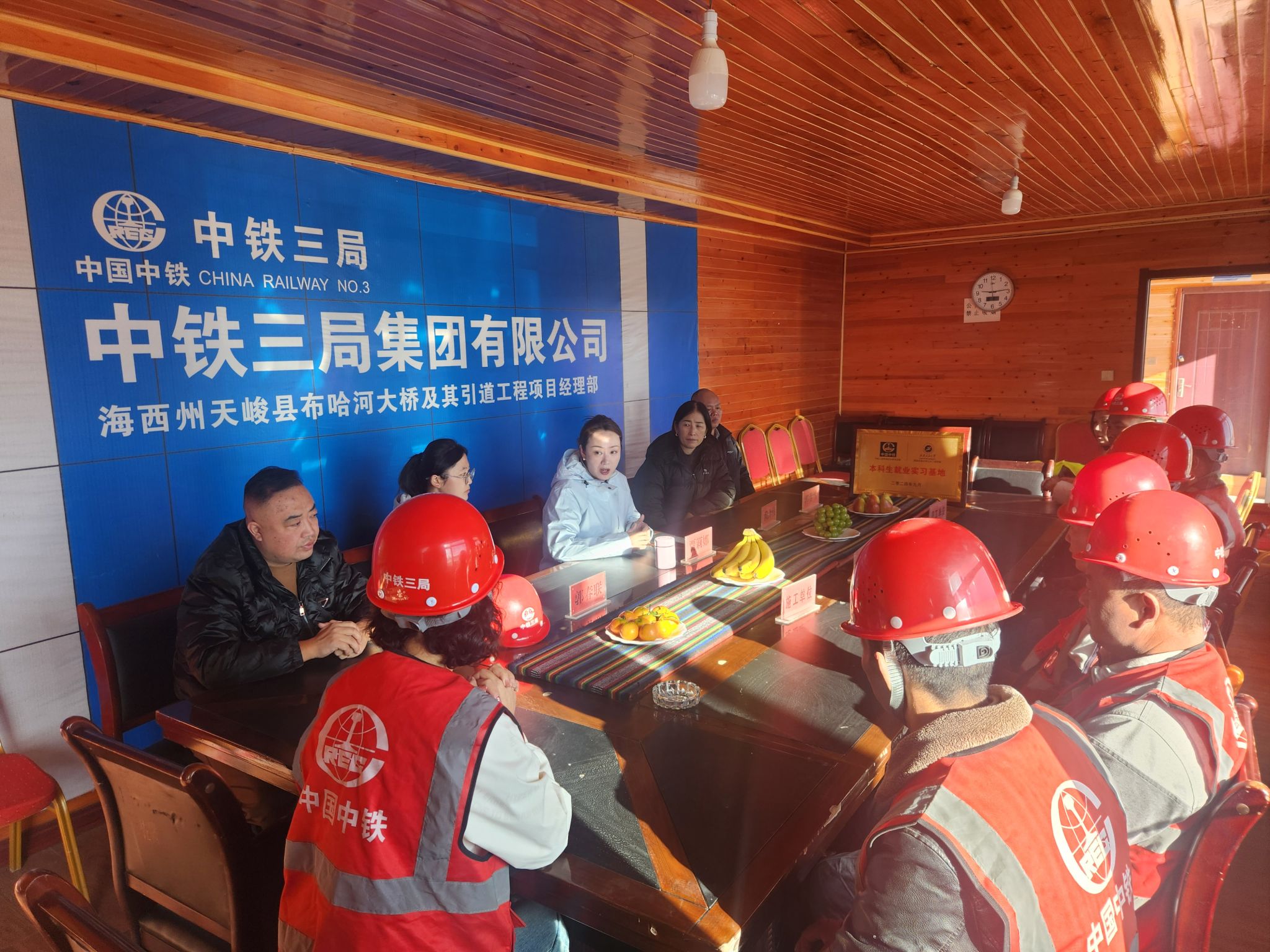 按照學院的年度工作計劃,積極有序推進校企合作。10月1日,土木工程學院黨委書記、副院長賈莉娜一行4人赴青海省海西州中鐵三局集團布哈河大橋項目部(以下簡稱項目部)開展“本科生就業實習基地”授牌儀式。雙方進行了交流座談,項目經理山玉英,項目技術負責人賴澤偉等相關科室負責人參加了座談會。座談會由賴澤偉主持。