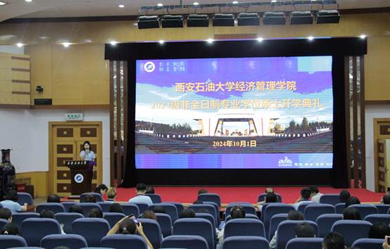 在新中國75周年華誕之際,西安石油大學經濟管理學院于10月1日下午在雁塔校區西階學術報告廳隆重舉行了2024級非全日制專業學位碩士研究生開學典禮。學院黨委書記談建勤、院長王君萍、黨委副書記楊生強、副院長李春霄、MBA項目負責人黃莉、MPAcc項目負責人寧宇新及學院相關老師出席典禮,典禮由科研與研究生辦公室主任武歡主持。來自全國各地的新生齊聚一堂,共同開啟了他們嶄新的學術旅程。