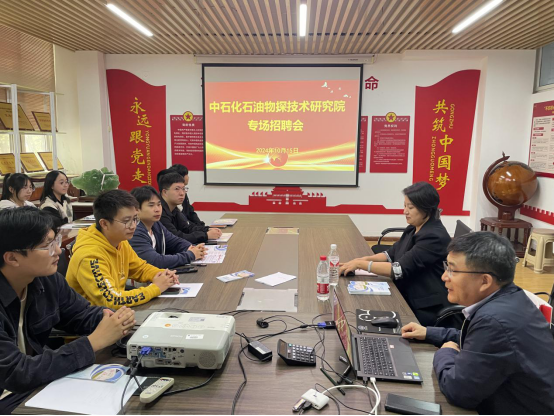 為進一步促進畢業生就業工作,10月15日,地球科學與工程學院舉辦中石化石油物探技術研究院(以下簡稱物探院)專場招聘會。中石化物探院高級專家吳壇珍、中石化物探院黨委組織部副部長崔寧寧、地球科學與工程學院副院長黨偉、研究生輔導員姜英哲以及20余名碩士研究生參加。
