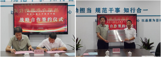 隨后,雙方共同簽署了合作框架協議和校外實習實踐基地協議。茍毅飛代表體育學院向西安經發城運文化體育產業有限公司授予實習實踐教學基地牌匾。