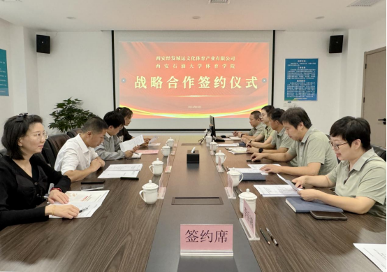 為進一步加強校企交流合作,推進理論和實踐的有機結合,促進體育實踐與教學科研的良性互動,10月14日下午,體育學院黨總支書記茍毅飛一行赴西安經發城運文化體育產業有限公司走訪交流,并舉行合作框架協議和校外實習實踐基地共建協議簽約儀式。西安經發城運文化體育產業有限公司黨支部書記、副總經理吳飛鵬,副總經理李嬋娟及各部門經理;體育學院辦公室主任姜國平、教學辦主任張楠、社會體育指導與管理專業教研室副主任全茹參加儀式。儀式由西安經發城運文化體育產業有限公司李嬋娟副總經理主持。