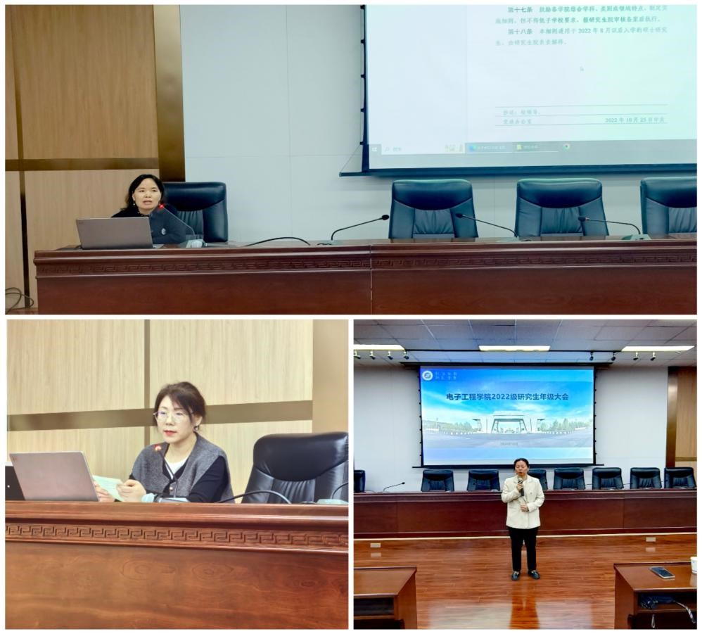10月17日下午,電子工程學院在雁塔校區西階第五會議室召開2022級研究生大會。學校就業創業指導中心干事馬丁、副院長楊一、科研與研究生辦公室主任趙驕楊、教學秘書張小妹、科研秘書楊琳參加會議。會議由研究生輔導員李君主持。