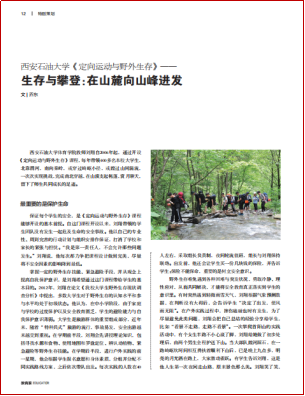 近日,由體育學院開設、劉翔老師主講的《定向運動與野外生存》課程,被《教育家》雜志(2024年9月第4期),以標題《西安石油大學〈定向運動與野外生存〉——生存與攀登:在山麓向山峰進發》刊登報道。