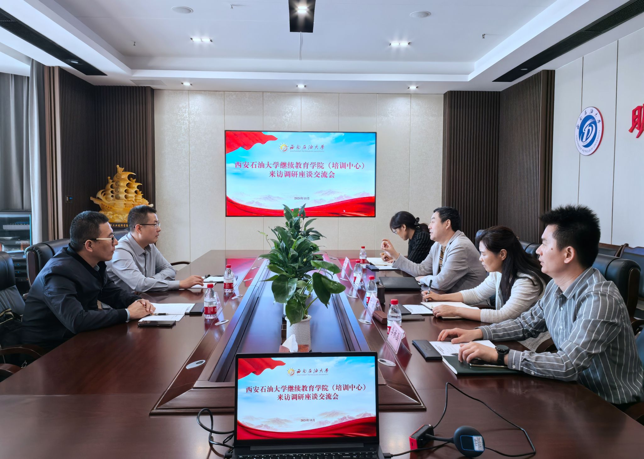 與西南石油大學繼續教育學院座談時,院長朱治富對林紅先院長一行的到訪表示熱烈歡迎,并深情地回顧了雙方在長期以來結下的深厚友誼與近年來的相互交流走訪。兩院均根植繼續教育發展,早期均致力于石油石化行業員工學歷提升、技能升級、知識更新,近期均服務于石油石化行業技術革新與地方經濟發展并重。雙方圍繞發展歷程、組織機構、人員配置、辦學思路、管理模式以及基地建設、市場開拓、項目設計等方面作了交流研討。同時,雙方均表示希望在未來能夠加強交流與合作,互通有無、互學共鑒,共同推動繼續教育事業發展。