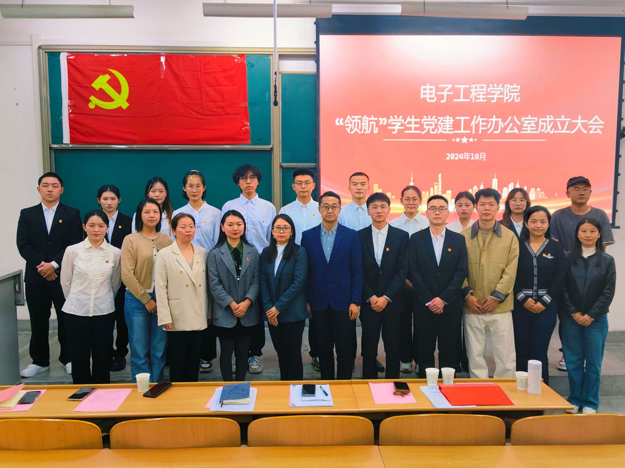 為進一步加強學生基層黨支部建設,推進學生黨建工作科學化、制度化、規范化,發揮好學生黨員的先鋒模范作用,10月28日下午,電子工程學院在博思樓321室召開“領航”學生黨建工作辦公室成立大會。電子工程學院黨委書記潘娜、黨委副書記芮執根、學生工作辦公室主任錢宇航、各年級輔導員及全體學生黨員參加會議。會議由2023級輔導員、人工智能專業學生黨支部書記明望舒主持。