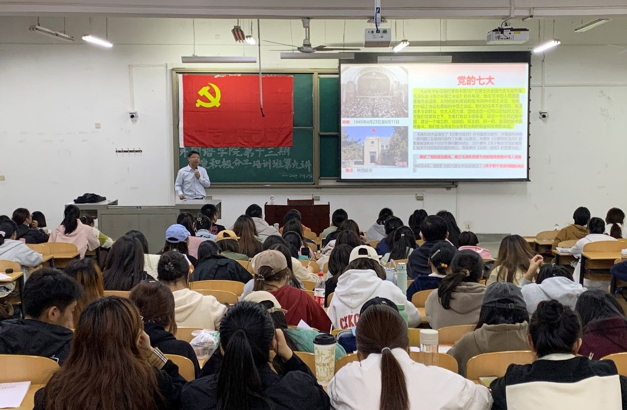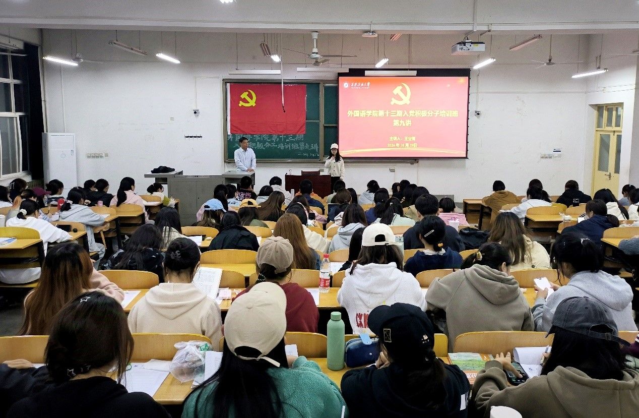 10月29日晚,外國語學院在鄠邑校區博思樓B221教室舉辦第十三期入黨積極分子培訓班第九講。外國語學院黨委副書記王業青應邀擔任主講,學院2024年全體入黨積極分子參加培訓。