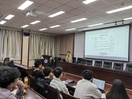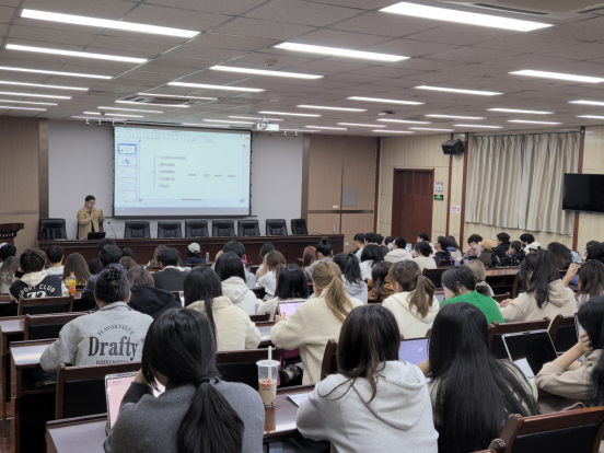 魏銘辰首先向全體同學強調四六級口語考試與筆試同等重要,尤其在用人單位求職面試時,對這口語成績有專門要求,因此,參加四六級考試的同學要加強練習口語,重視口語考試。緊接著以往年考生成績單為例,詳細講解了四六級考試的題型分布、考試內容,各題型分值及時間分配等,叮囑同學們要合理的分配好答題時間與順序。最后對四六級聽力、閱讀、寫作和翻譯題型逐項拆解,以真題為例,一一指出各類題型的答題技巧,帶領大家“沉浸式”體驗四六級考試答題過程。最后,他鼓勵同學們認真備考,誠信作答,力爭收獲滿意的成績。