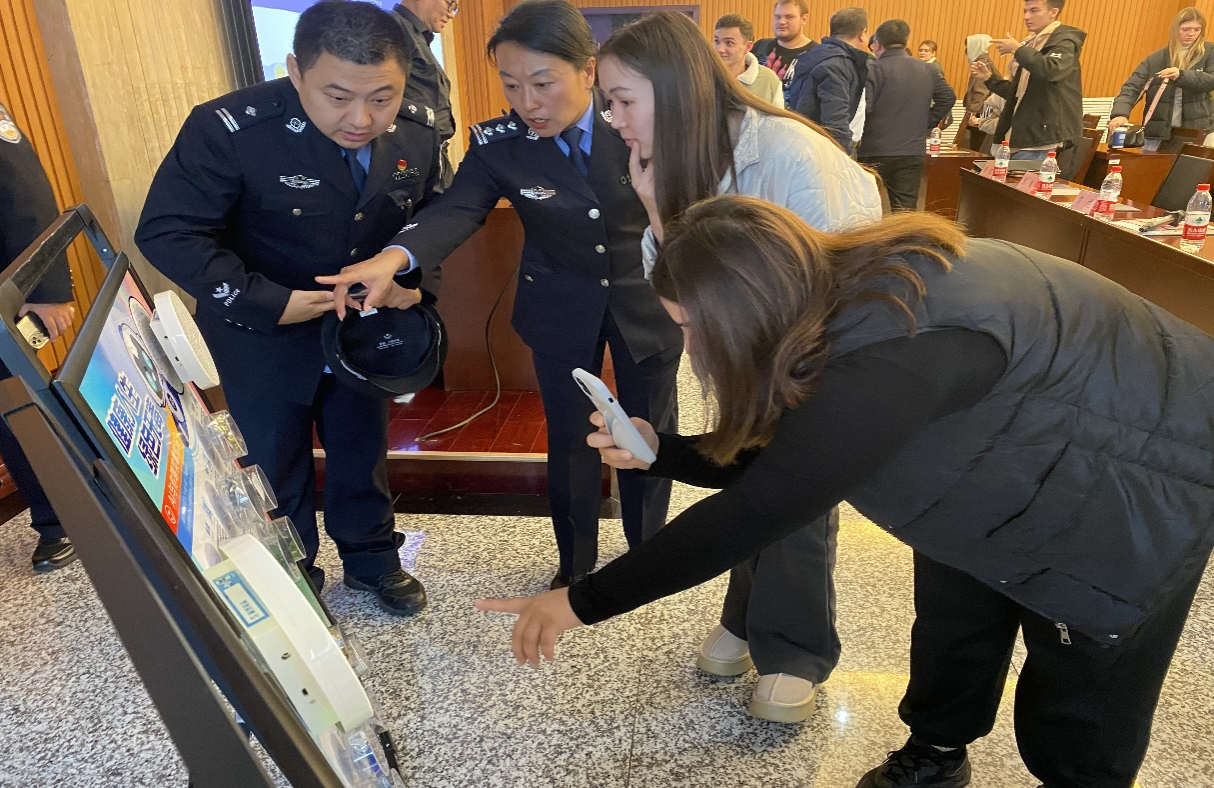 李敦警官詳細講解了宗教管理及互聯網使用的相關法律規定。李慧中警官向國際學生詳細介紹了簽證申請、居留許可辦理、外國人臨時住宿登記和出入境注意事項等內容。張楊警官重點介紹了禁毒相關法律法規,講解毒品成癮原理、生理心理危害性,提醒學生時刻保持警惕,遠離毒品。席擘警官針對國際學生在日常生活中可能遇到的治安、交通和住宿等法律問題進行了詳細介紹,提供了實用的法律建議和求助途徑。