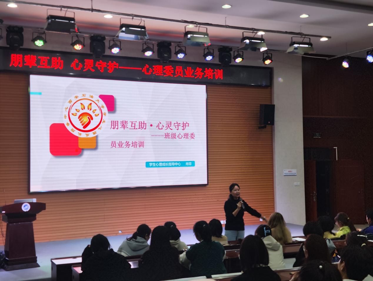 10月30日晚上7:30,學生心理成長指導中心主任肖瓊在鄠邑校區崇文樓118報告廳為全體2024級本科生和研究生班級心理委員及新任職心理委員們做了主題為“朋輩互助、心靈守護”的業務培訓。
