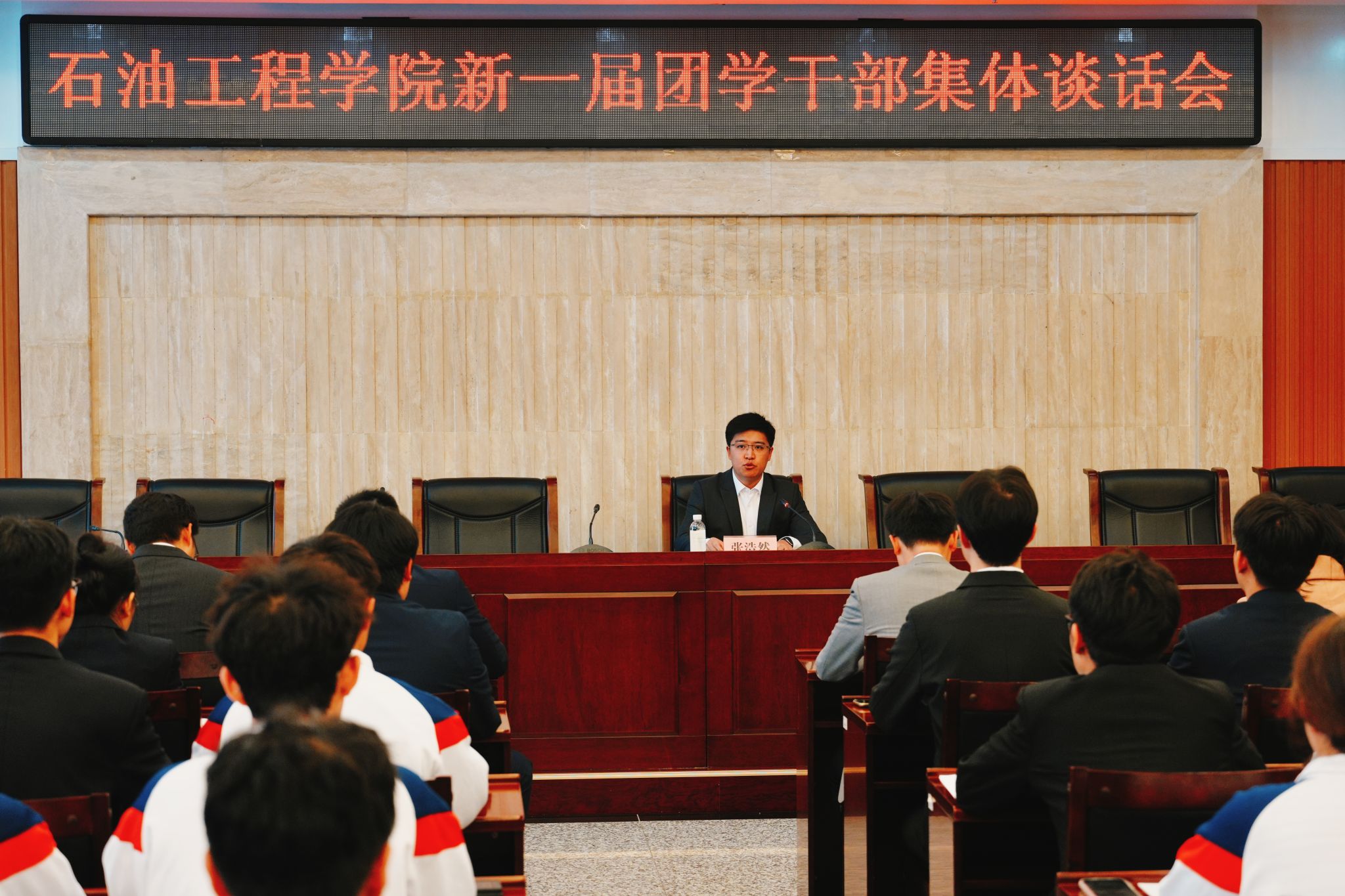 大會閉幕后,學院黨委副書記張浩然在圖書館第一會議室與新一屆團學骨干開展集體談話。他指出,石油工程學院是學校最有歷史底蘊、最有精神傳承、最有價值貢獻、最有學術追求的學院,石油工程學院團委學生會是學生工作中最有榮譽感、最有戰斗力的不可或缺的力量。他強調,一要堅定信念、挺拔靈魂,努力成長為校園里最有政治擔當的骨干。講政治是學生干部最應該具備的重要品質。要注重在各類活動中突出政治性、思想性、引領性,教育引導廣大青年愛國愛黨、愛校榮校,堅定能源報國之志,團結引領廣大團員和青年為中國式現代化挺膺擔當。要努力成為最有領導力、最有組織力、最有動員力、最有號召力的學生集體,通過發揮作用讓全院師生形成最大發展共識,全力推動學院學生工作各項任務高水平推進。二要精研理論、融會貫通,努力成為推動團學改革發展的先鋒。要不斷增強學生會組織的政治性、先進性、群眾性,切實去除“機關化、行政化、貴族化、娛樂化”,著力加強自身建設,“不做學生官,爭做青年友”。要扮演好學生與學院、學校之間的橋梁紐帶,走進同學、貼近同學,重心下沉、深入基層,提升學生會組織的滿意度、貢獻度、認可度,讓同學擁有獲得感和幸福感。三要立足高遠、洞察時勢,努力成為打造一流工作體系的闖將。通過對比分析明確工作定位,圍繞工作主線建立工作體系。新一屆團委學生會主席團成員要盡快拿出工作綱領,清晰的回答如何全心全意為同學服務這個關鍵問題,清晰的回答如何引領石油工程學院青年學生實現全面發展的問題,清晰的描繪團學組織改革的藍圖、隊伍的建設、日常的學習、品牌的打造、學風的提升、文化的建設等問題,要盡快在學??锕_發布,接受全體同學監督。四要敢于創新、繼往開來,努力成為構建特色品牌活動的達人。學生干部要更有激情更有活力,構建特色品牌要堅持傳承、敢于創新、精細打磨、擴大影響,舉辦活動要秉持“整體動員、廣泛參與、展現集體”的原則,讓更多同學走到聚光燈下展現自我。要通過“人在事上磨”著力塑造一支“召之即來、來之能戰、戰之能勝”的團學鐵軍。五要向內生長,逐光而行,努力成為好學力行自強不息的榜樣。優秀的學生干部除了要在學生工作上展現能力水平,還要通過自身的成績和成果帶動實現引領作用。要培養自我覺察的能力、自我疏導的能力、獨立思考和批判思維的能力。要樹立標桿意識、頭雁思維、領跑心態,追求卓越,永爭第一。