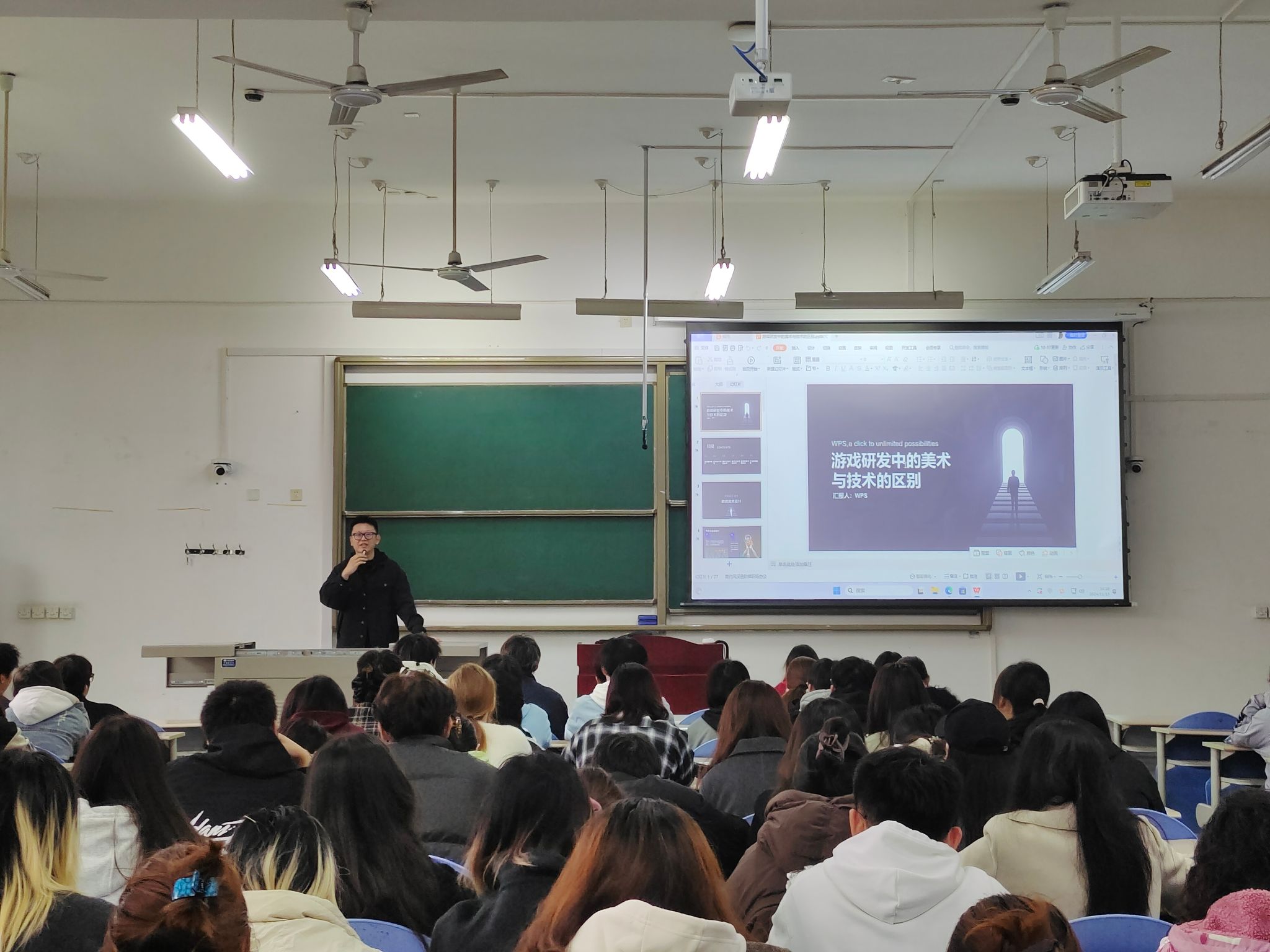 為幫助設計專業學生提前考慮發展方向,了解游戲行業形勢,提升就業競爭力,樹立正確擇業觀。11月13日下午,人文學院邀請西安果動優培在鄠邑校區博思樓B103開展了主題為《游戲美術攻略指南》專題講座,2022級、2023級設計專業200余名學生參加。
