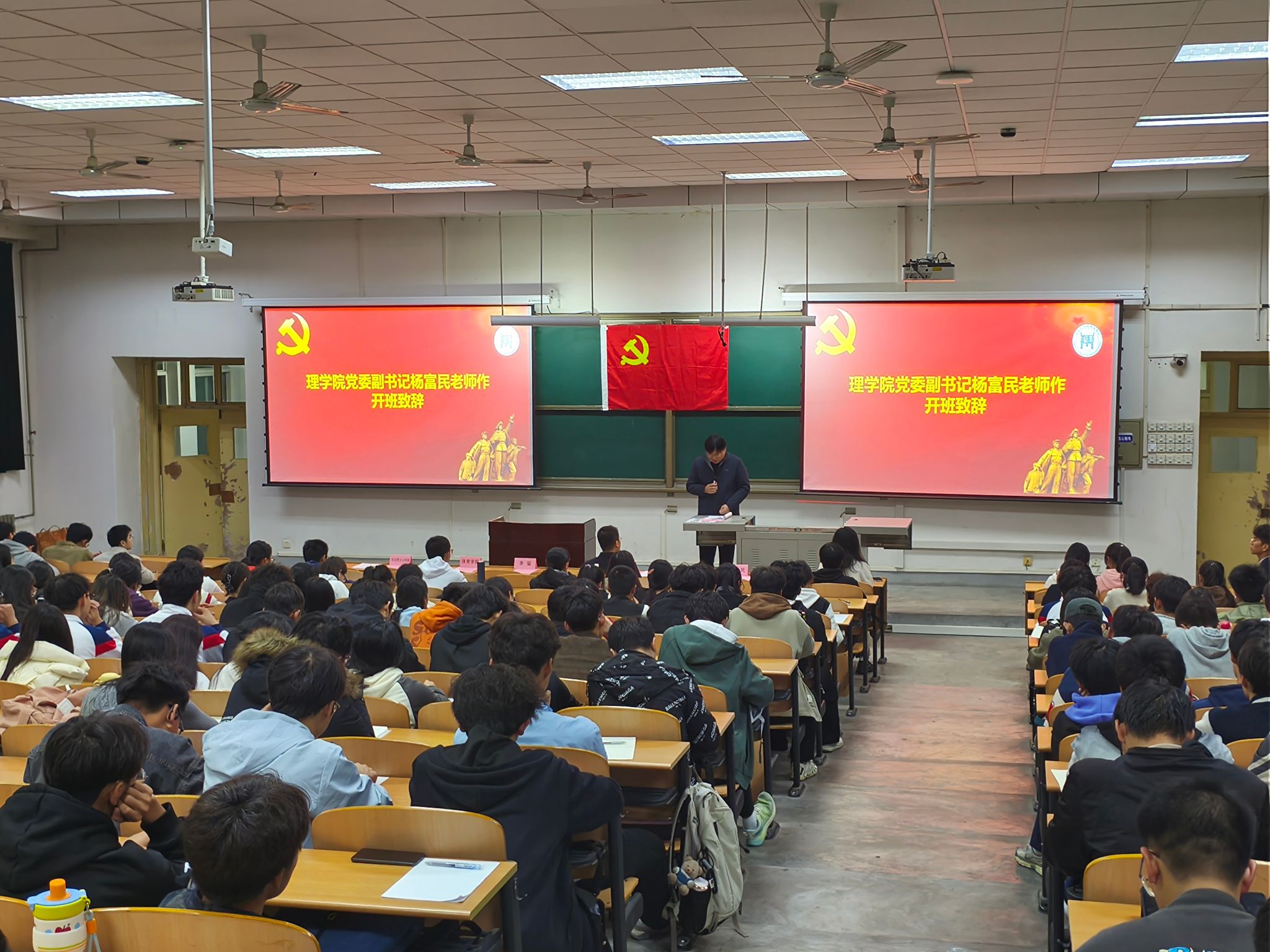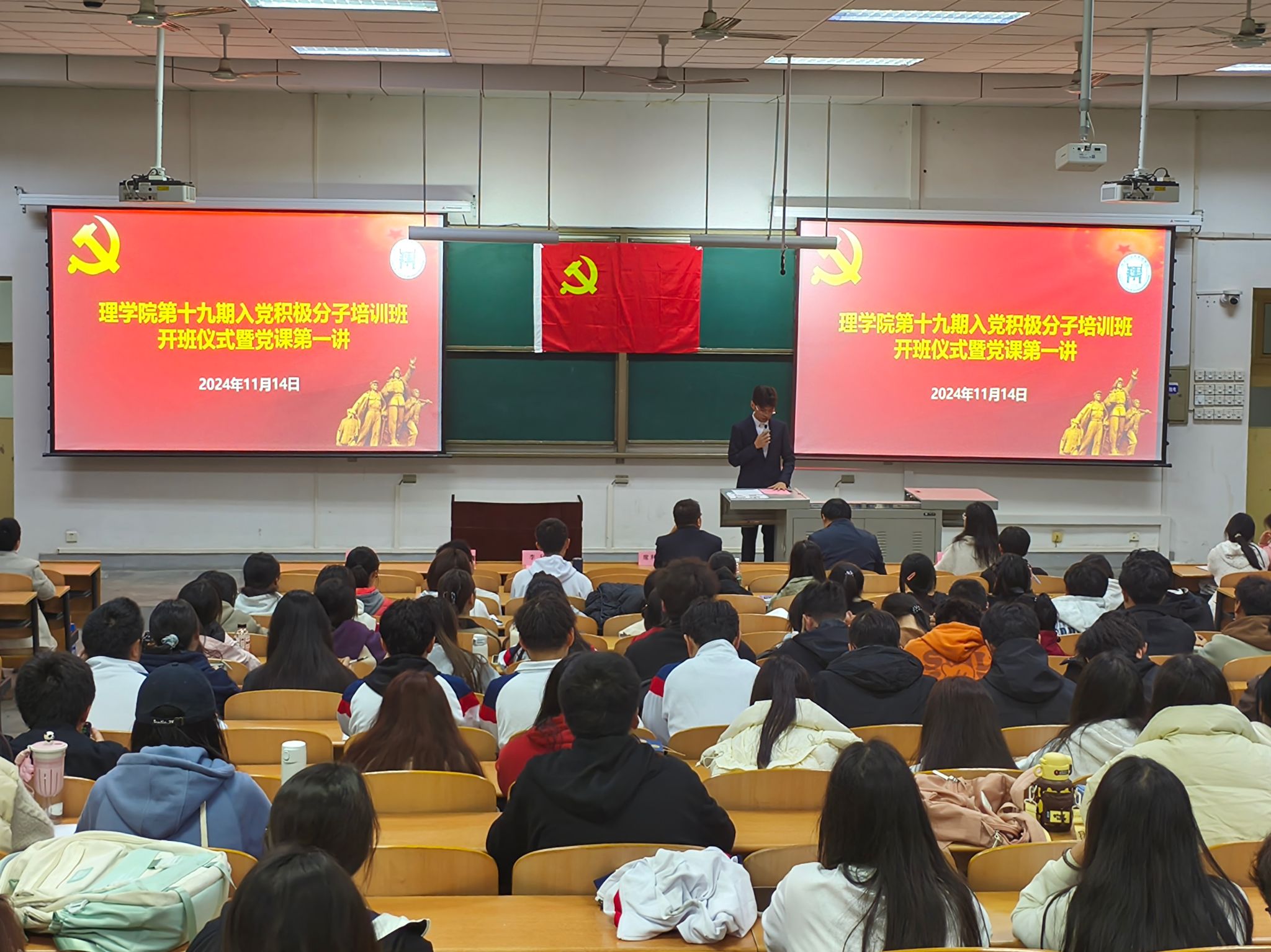 11月14日晚,理學院、馬克思主義學院、體育學院聯合舉辦的第十九期入黨積極分子培訓班在博覽樓234教室開班。理學院黨委書記席利哲、黨委副書記楊富民,輔導員李猛、馬瑤以及理學院、馬克思主義學院、體育學院的237名入黨積極分子參加。開班典禮由李猛主持。