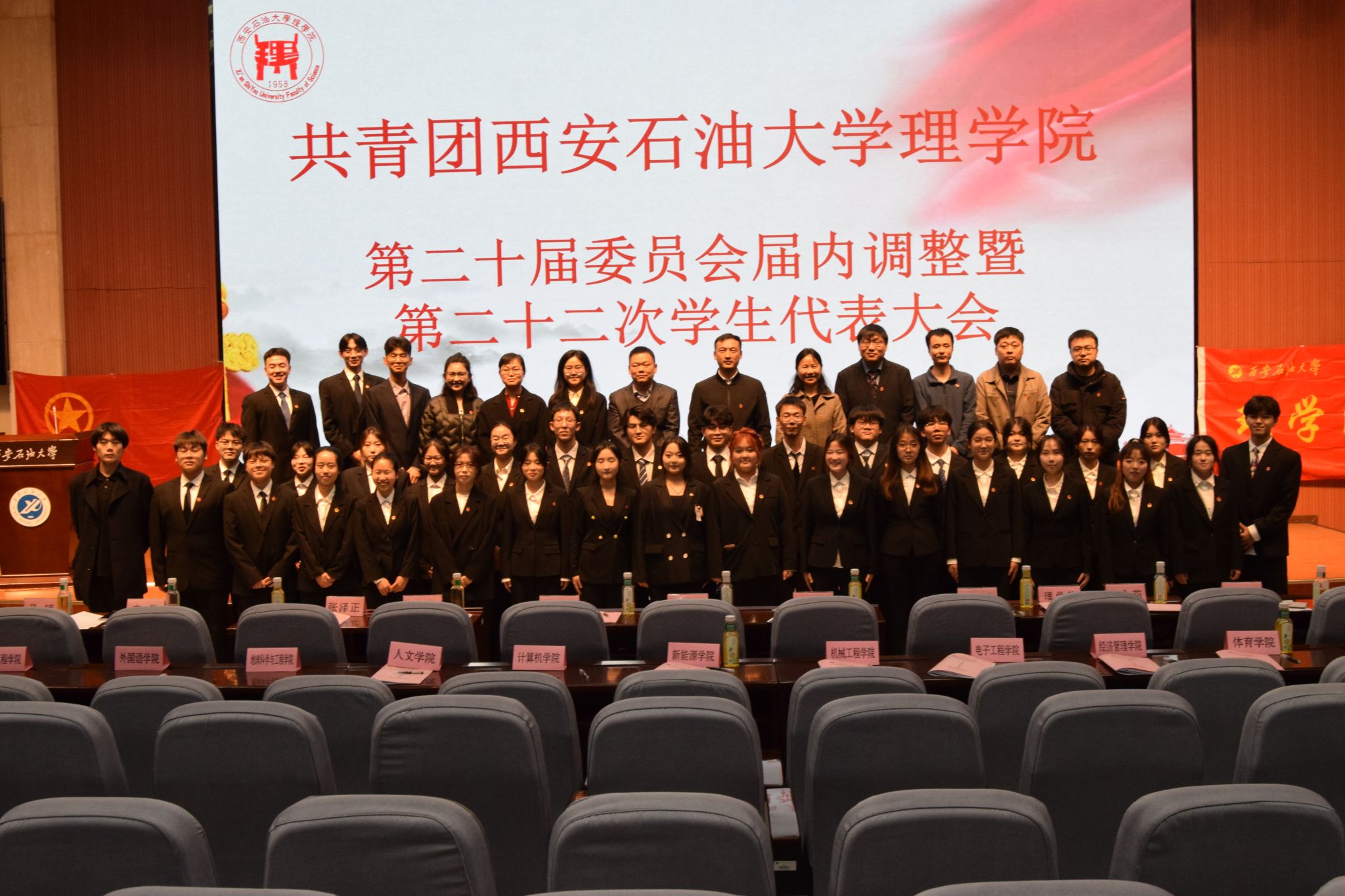 2024年11月17日晚,共青團西安石油大學理學院第二十屆委員會屆內調整暨第二十二次學生代表大會在鄠邑校區弘石學術報告廳隆重舉行。學生心理成長指導中心主任肖瓊、團委副書記王軍策、理學院黨委副書記楊富民出席會議,機械工程學院、材料科學與工程學院、計算機學院、土木工程學院、體育學院團學指導老師、校學生會、校研究生會、青年志愿者協會及13個學院團學代表受邀參會,理學院學生工作辦公室全體老師、各年級學生代表參加會議。