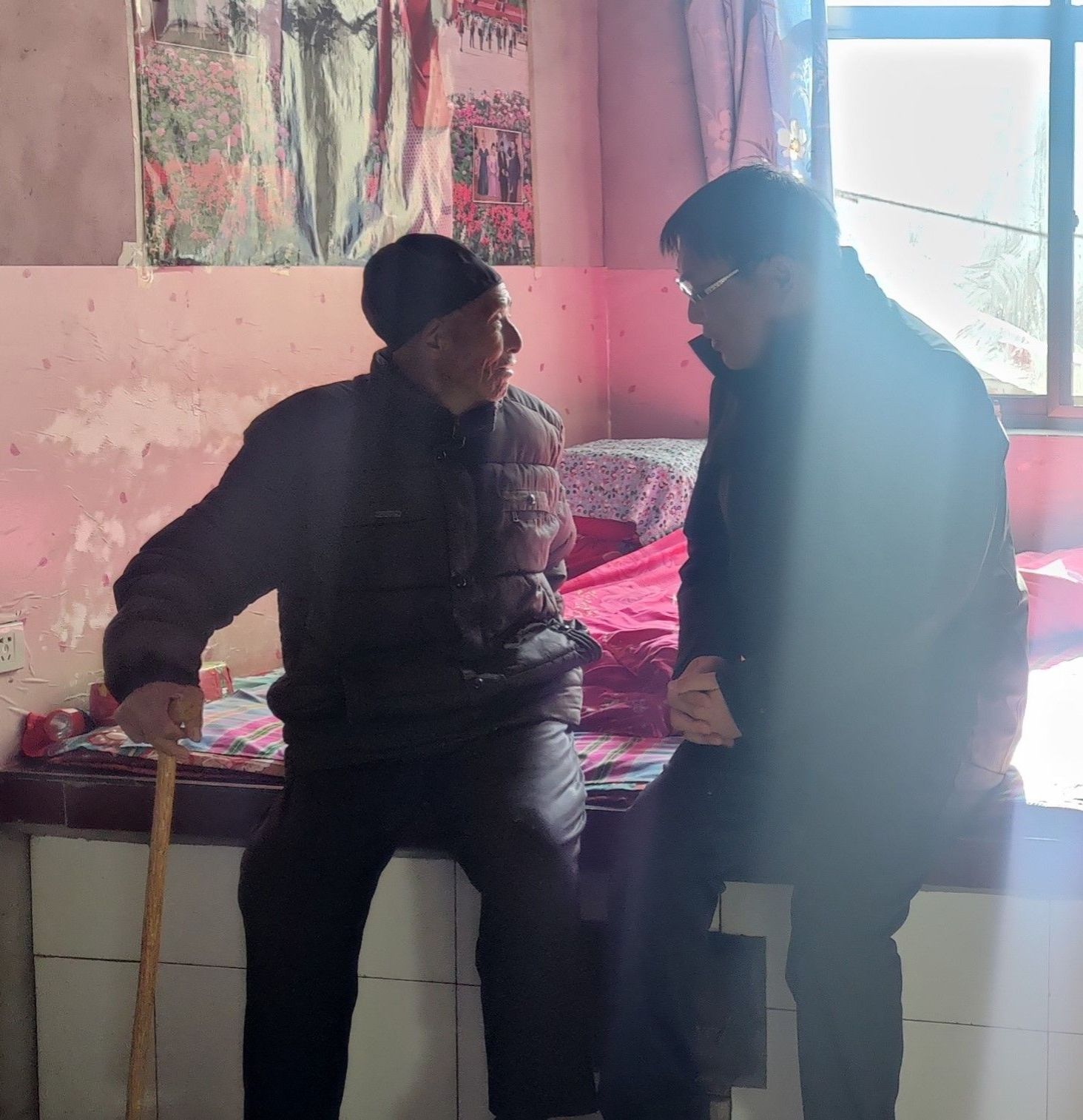 在學校駐村干部的陪同下,席利哲一行來到理學院精準幫扶戶居住在永壽縣馮家莊村的楊永信和堅固村的陳春軒家中,送去牛奶、食用油、大米、面粉等生活物資,并與其親切地拉起家常,悉心詢問他們的身體健康狀況和生活情況,了解農作物收成、子女的家庭和生活狀況、冬季取暖和其他現實需求。席利哲叮囑兩戶老人要照顧好身體,學院將持續落實幫扶政策,幫助老人克服困難,穩定增收,奔向美好生活。陳春軒和楊永信老人均表示感恩學校及學院多年的幫扶,他們對今后的生活充滿信心。