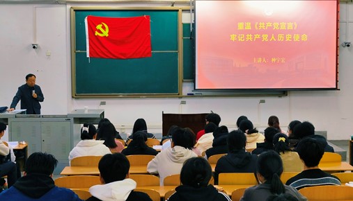 種宇宏對《共產黨宣言》展開了深入且細致地解讀,從《共產黨宣言》誕生的歷史背景、《共產黨宣言》的主要內容和基本原理、《共產黨宣言》對中國社會和中國先進知識分子的影響以及“牢記使命,踐行諾言”四個方面進行了講解。他詳細論述了《共產黨宣言》產生的客觀條件、主觀條件以及現實條件,并概括講解了《共產黨宣言》的基本框架和主要觀點。他希望同學們能夠堅定理想信念,不負人民的深切期望,牢記使命,砥礪前行,在新時代傳承和踐行《共產黨宣言》的精神內涵,為實現中華民族偉大復興貢獻自己的青春力量。