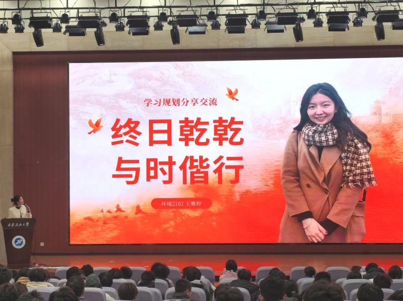 王雅婷同學以“終日乾乾,與時偕行”為題,圍繞合理規劃、成長建議和個人寄語三個方面,著重強調了學習過程中的“自知”、“自律”、“做自己”以及“勇于探索、嘗試和體驗”的重要性。她建議同學們在學習過程中要注意勞逸結合,合理安排時間,同時鼓勵大家要傾聽內心的聲音,積極參與各類活動,做有意義的事情;要真誠地愛自己,勇敢地追逐個人夢想。