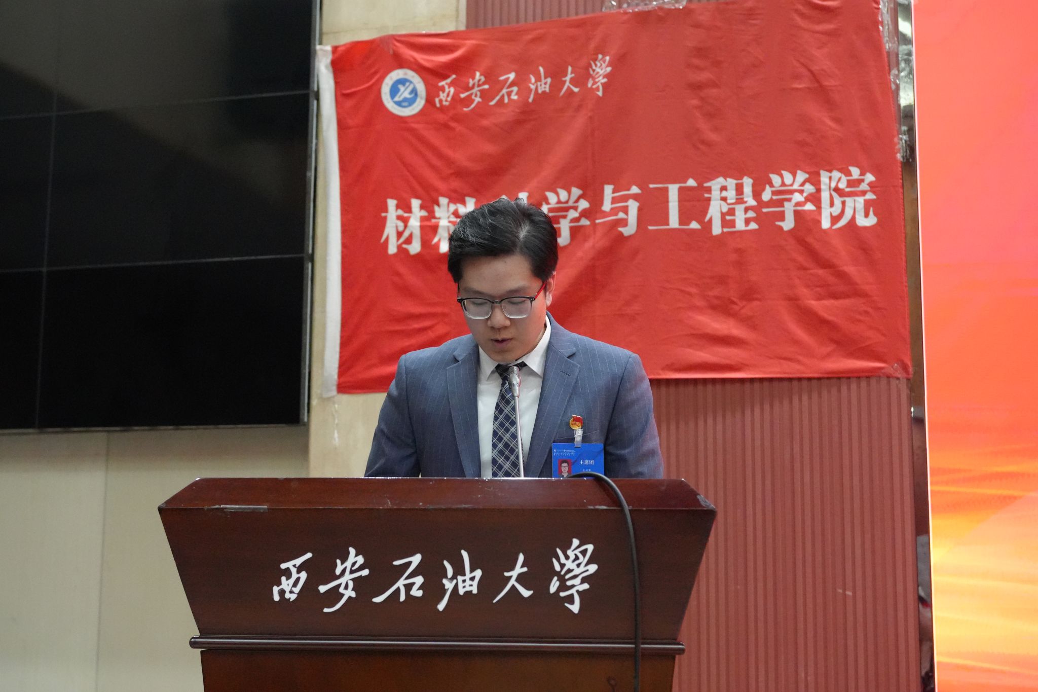 12月3日晚,共青團西安石油大學材料科學與工程學院第十二屆團委屆內調整大會暨第十三次學生代表大會在鄠邑校區弘石學術報告廳隆重召開。學院黨委副書記屈敏佳、校團委副書記王軍策、學院團委書記趙飛、各年級團總支書記、各兄弟院系代表以及160名團學代表參加本次會議。
