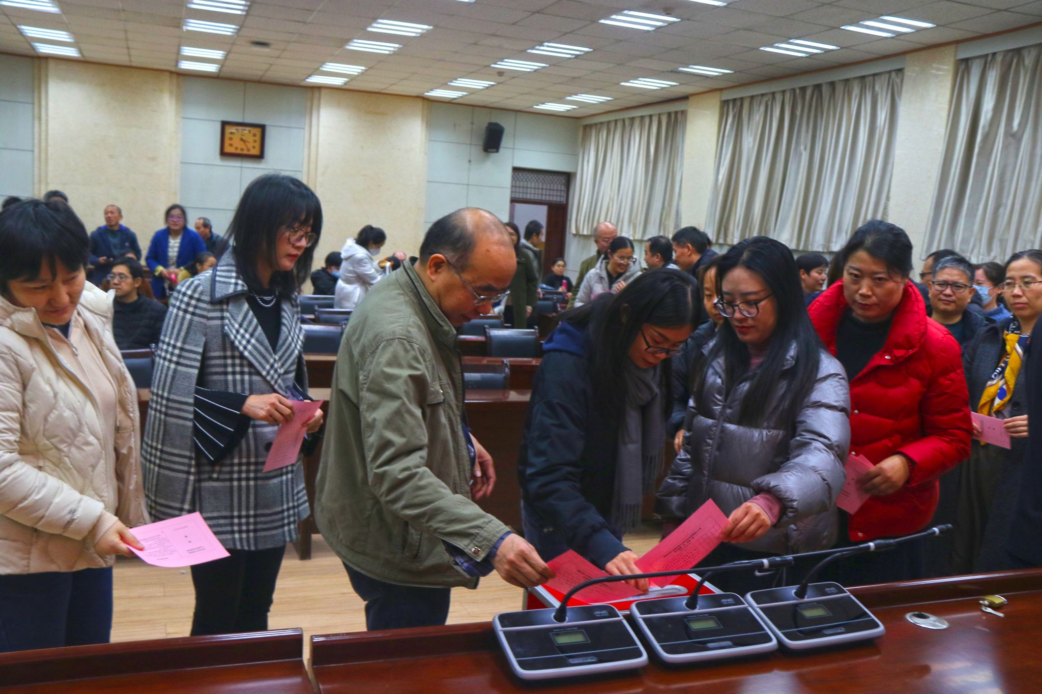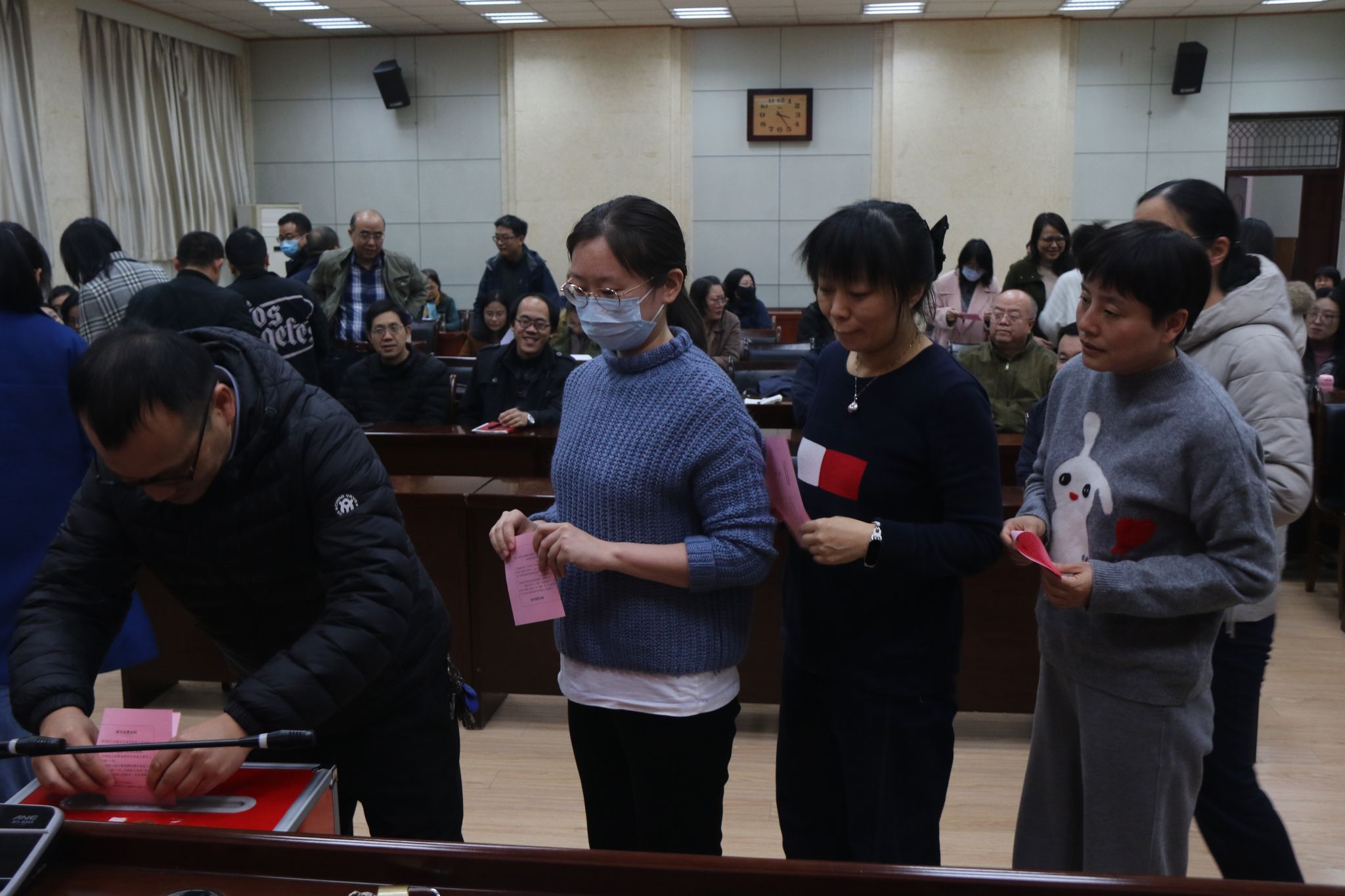 隨后,大會表決通過了監票人、計票人名單,以無記名投票的方式進行選舉。最終,劉孝艷、黃毓虎、趙子宇、白亮、賀曉麗、高楠、溫俊青7名同志當選為理學院第九屆部門工會委員會委員。會后,理學院第九屆部門工會委員會召開第一次全體會議,選舉劉孝艷為理學院工會主席,黃毓虎為理學院工會副主席,并對其他委員工作進行了分工。