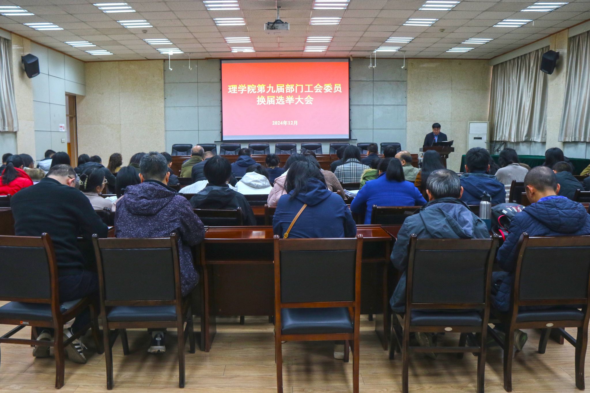 會上,席利哲介紹了本次換屆選舉工作籌備情況、八位候選人基本情況。理學院黨委副書記楊富民代表上一屆學院工會委員會作了《圍繞中心 服務大局 為加快推進高水平大學建設匯聚理學院力量》的工作報告及工會經費收支情況報告。