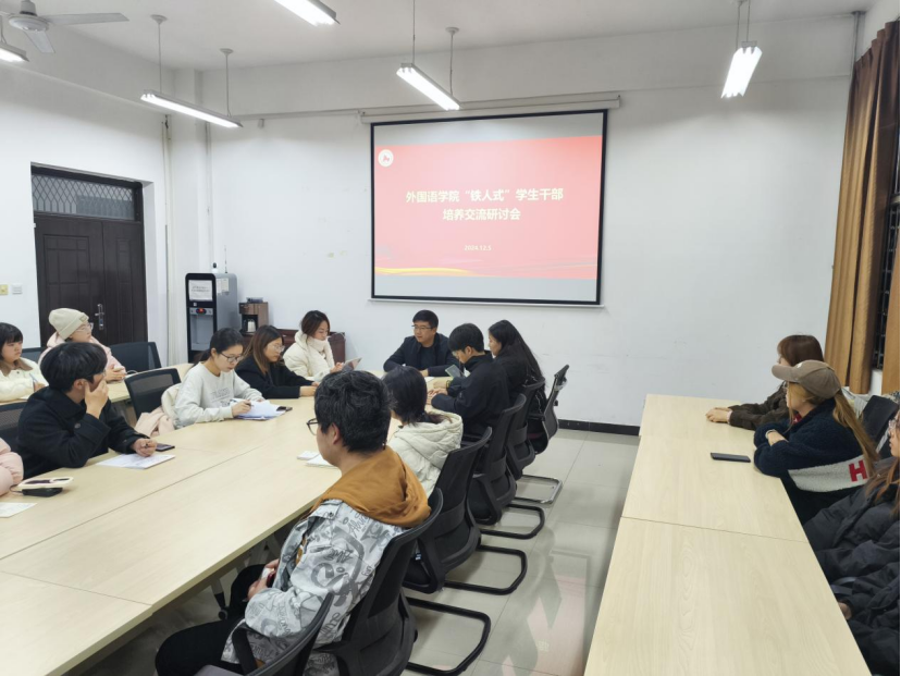 為進一步貫徹落實學校第三次黨代會精神,圍繞學校中心工作,引領學生干部繼承和發揚光榮傳統,弘揚鐵人精神,激勵學生干部增強責任感和使命感,充分發揮學生干部在工作中的積極性,12月3日、5日,外國語學院開展培養“鐵人式”學生干部交流研討活動,學院黨委副書記邱嶺,院團委、學生會學生干部共計30余人參加活動,活動由學院學生工作辦公室副主任、團委書記陳浩主持。