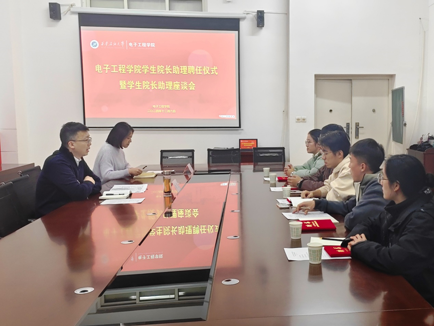 12月6日下午,電子工程學院學生院長助理聘任儀式暨學生院長助理座談會在鄠邑校區行知樓321舉行。電子工程學院院長李飛及新聘任學生院長助理參加,儀式由2024級輔導員沈軒羽主持。